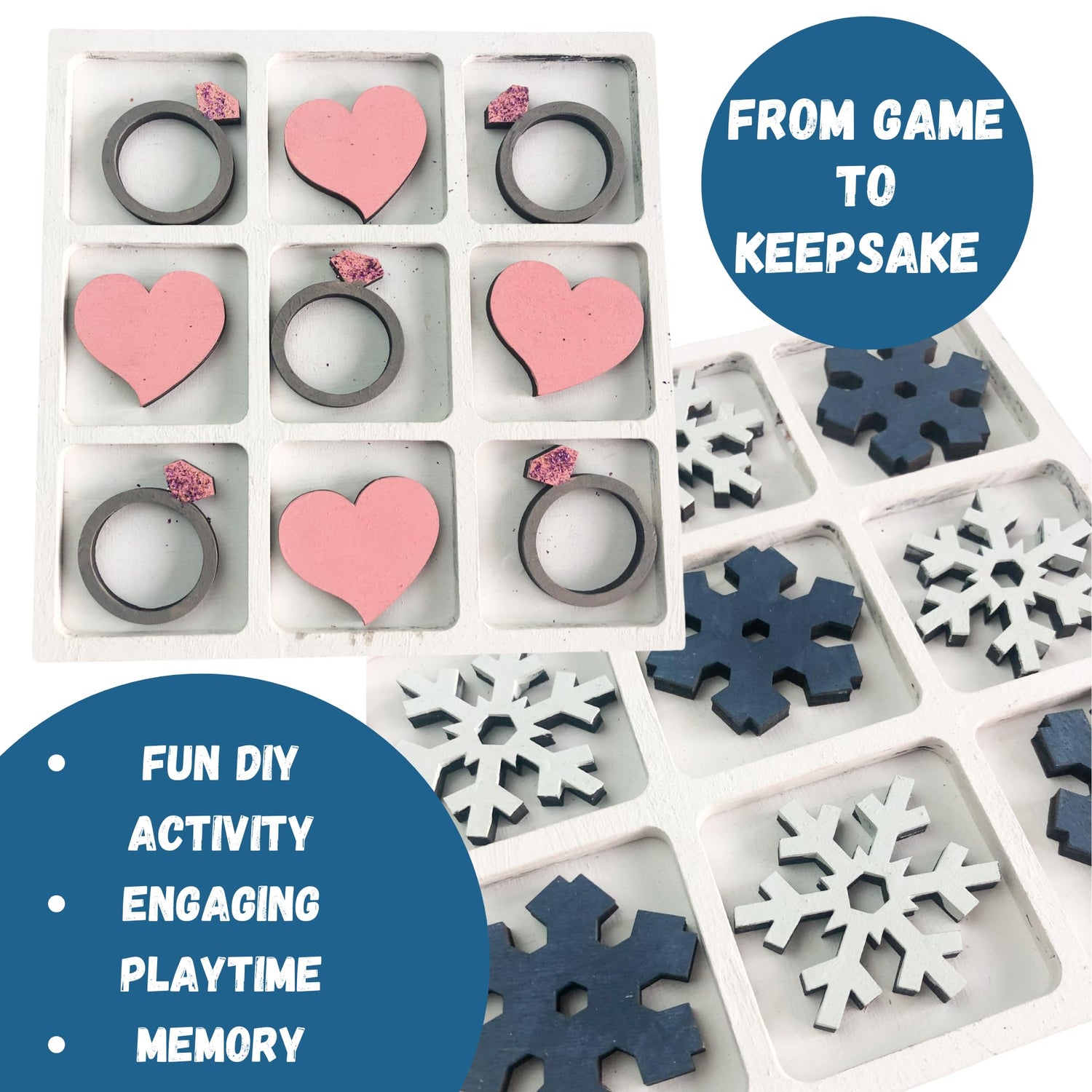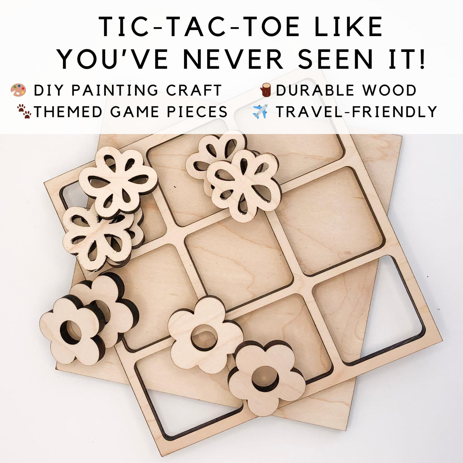 Nature Themed Tic Tac Toe Board Game, 5x5 inches Unfinished Wood DIY Painting Craft Kit for Kids with Wooden AVTRBoutique (Flowers)