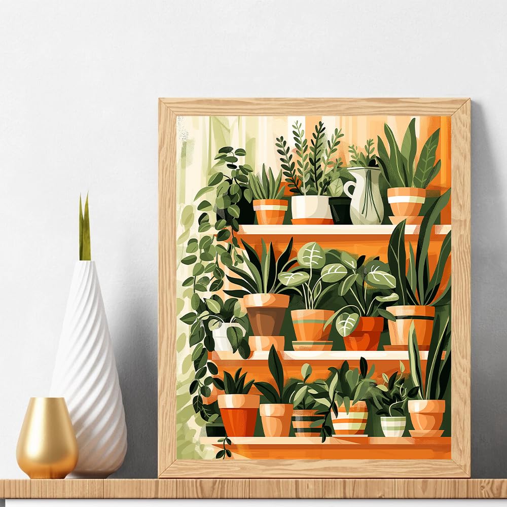 Natuyalo Paint by Numbers for Adults - DIY Adult Paint by Number Kits Painting on Canvas Green Plant Painting by Numbers for Beginners, Potted Art Craft Kits for Adults (16x20 Inch)