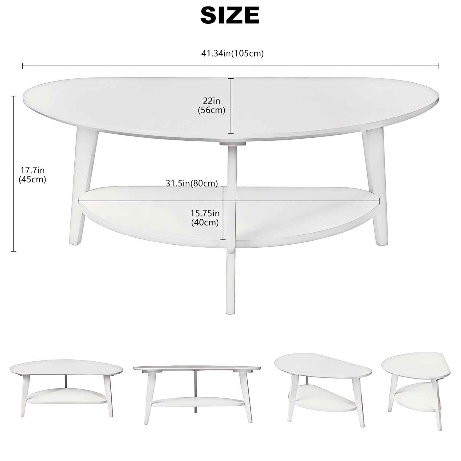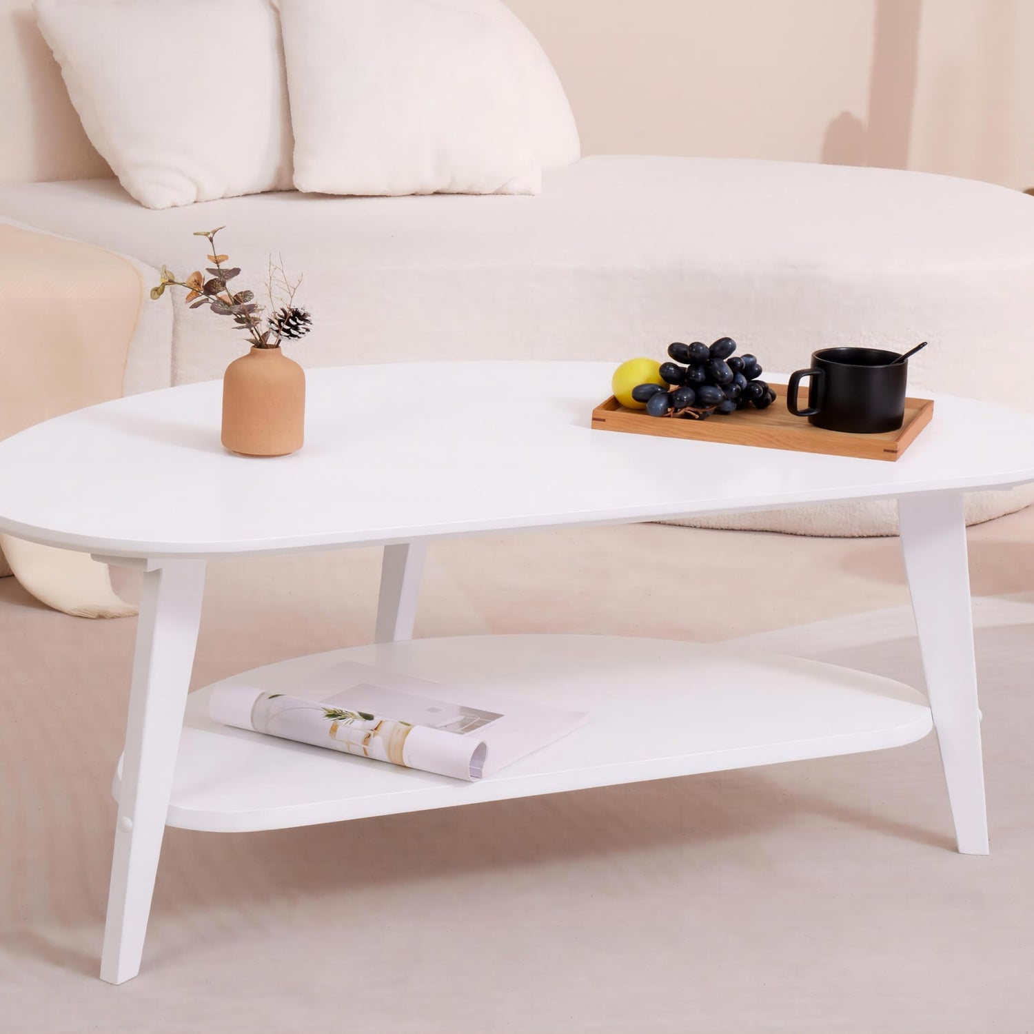 NAVREX Mid Century Modern Coffee Table with Storage Shelf, Oval Coffee Tables for Living Room 100% Solid Bamboo Wood Coffee Table Fireproof Table Circle Round Center Table (White)