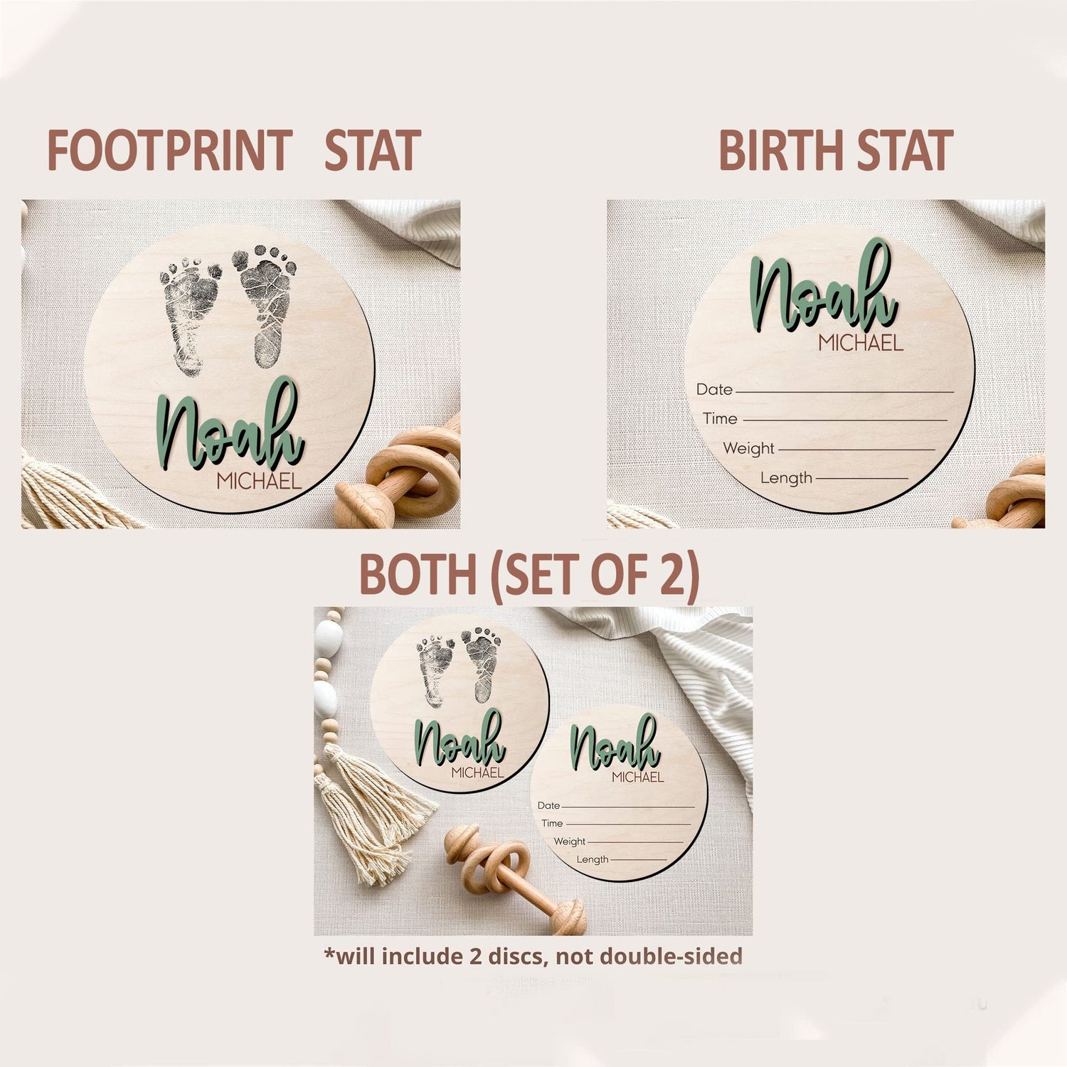 - ๐ INTRODUCE: Baby information recording on the wooden infant arrival disc, you can write down the baby's name, birth date, time, weight and length or information. You can print the baby's foot on the baby announcement sign. This baby name announcement sign is the birth announcement for a newborn.