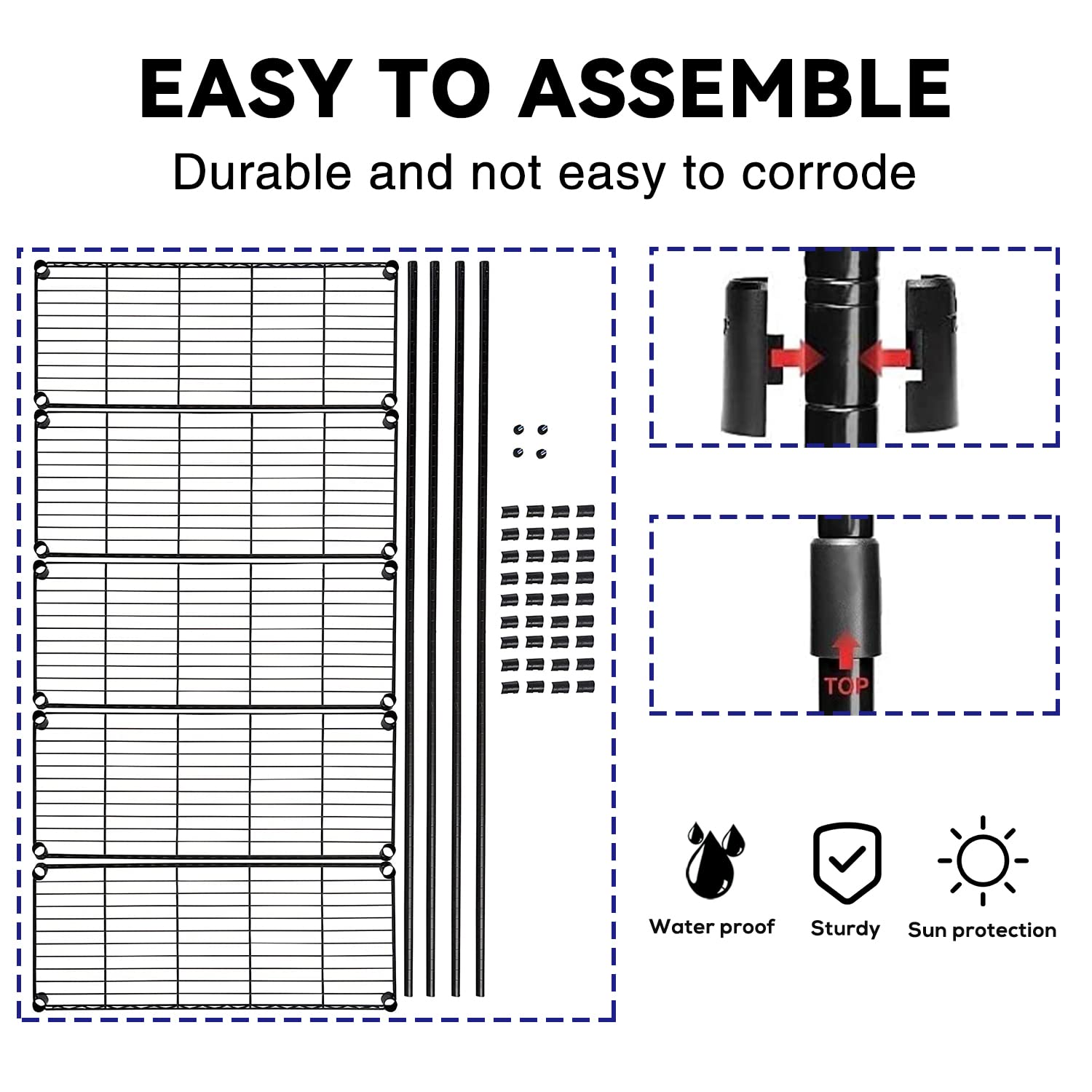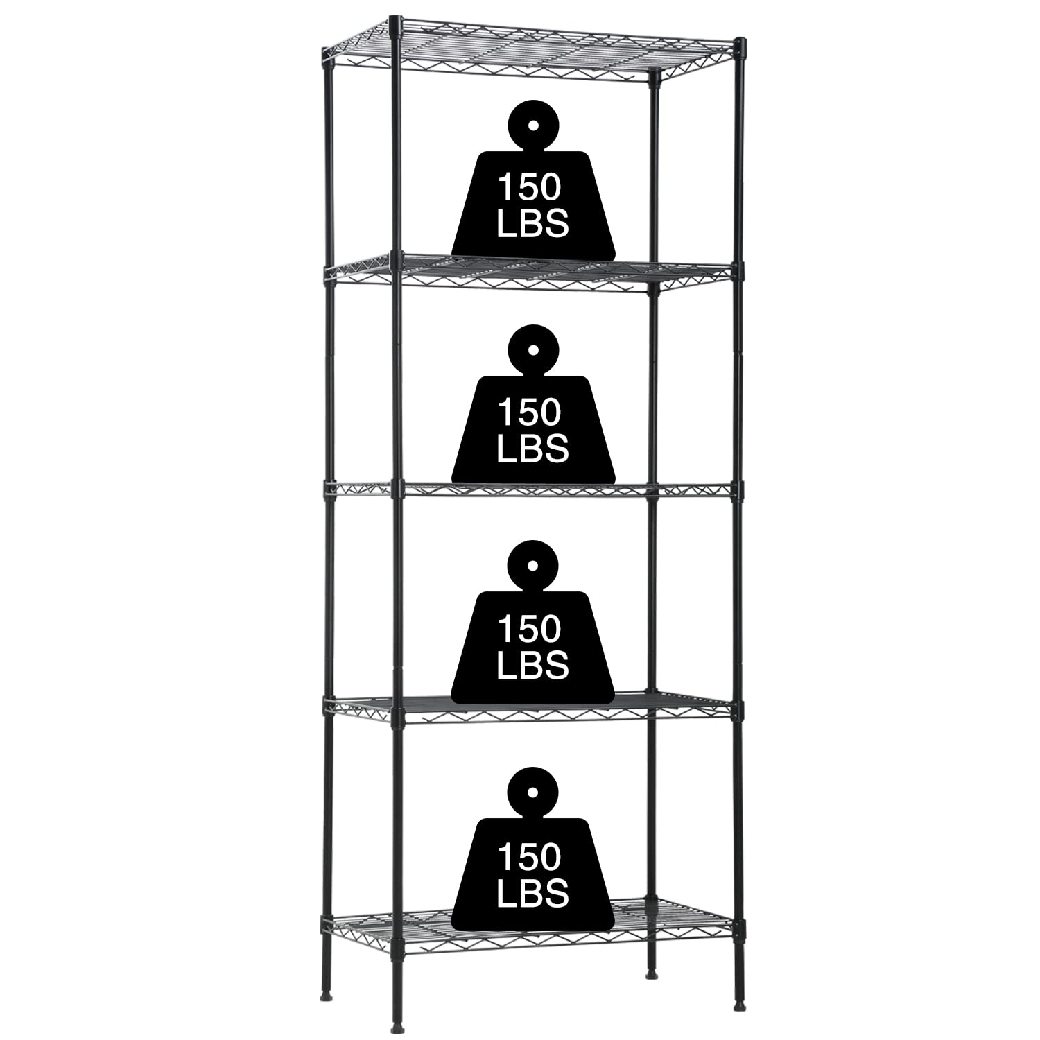 - 【Strong and Durable】Our storage shelves is made of heavy-duty steel wire.Durable enough and not easy to accumulate dirt and corrosion. Each shelf can support a weight capacity of up to 150lbs with a maximum weight capacity of 750 lbs for entire unit. It can meet most storage and all hosme storage needs.