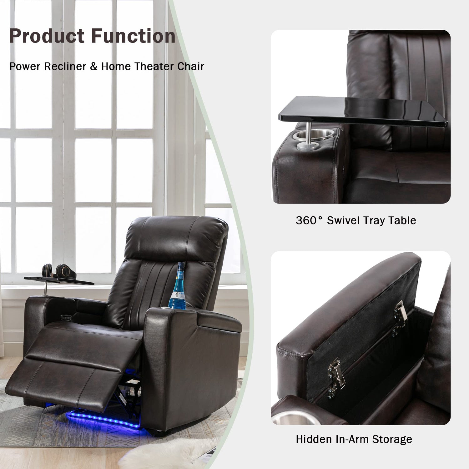 NCKMYB Premium Power Recliner with Storage Arms, Cupholders, Swivel Tray Table and Cell Phone Stand, Brown Armchair for Livingroom PU Leather