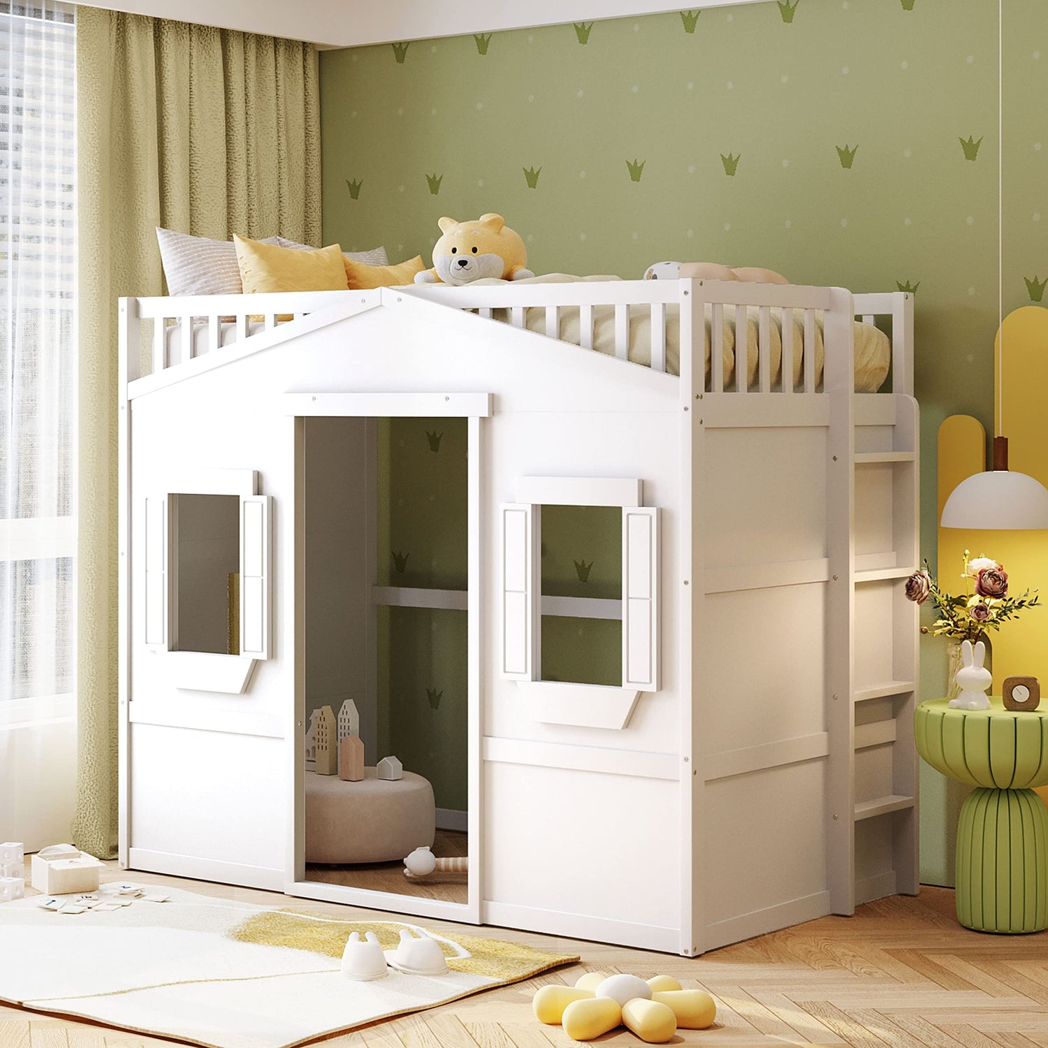 - 【Cabin Inspired Design】Featuring a cabin inspired design, this house bed features a whimsical upper roof, two windows and one door to simulate the basics of a miniature house's exterior. The unique build allows you to add an imaginative sense of creativity into your child's bedroom