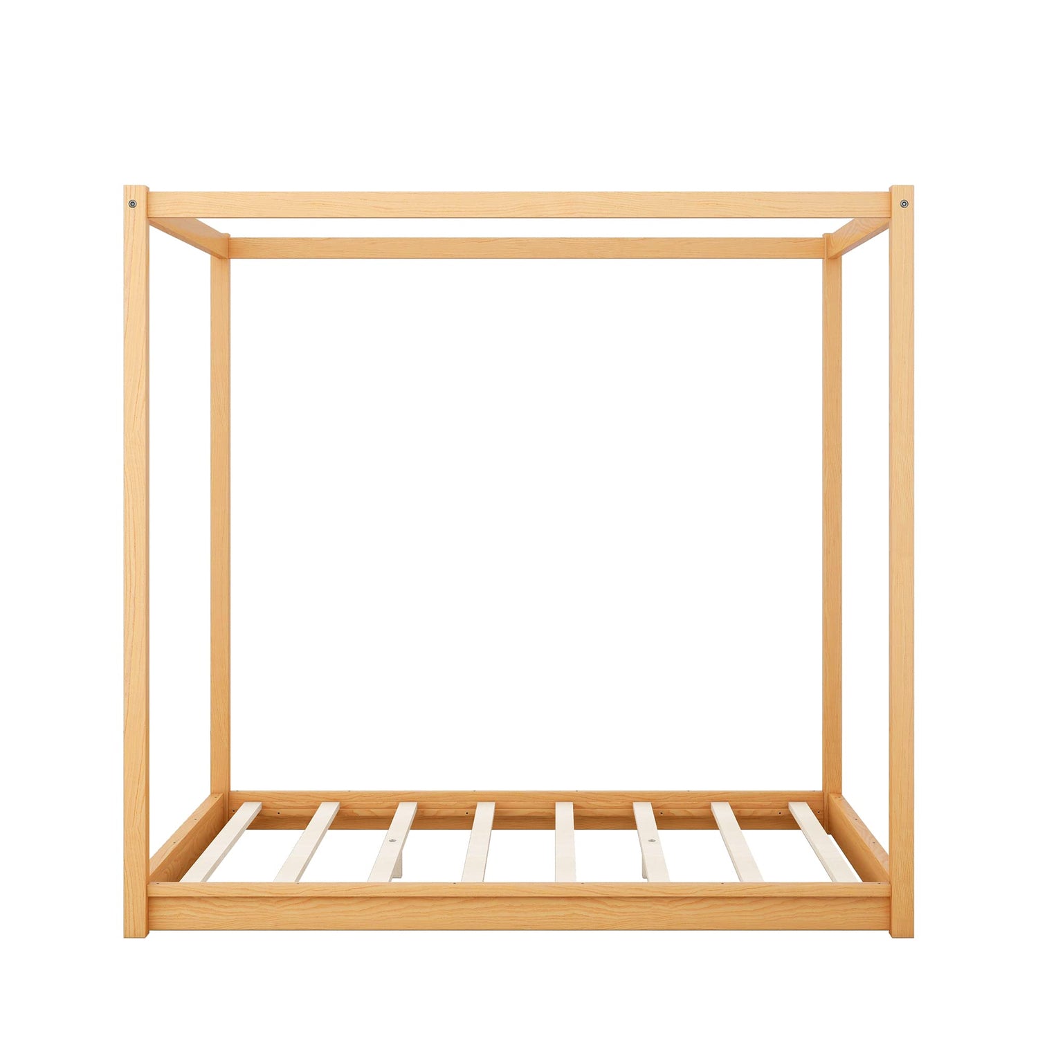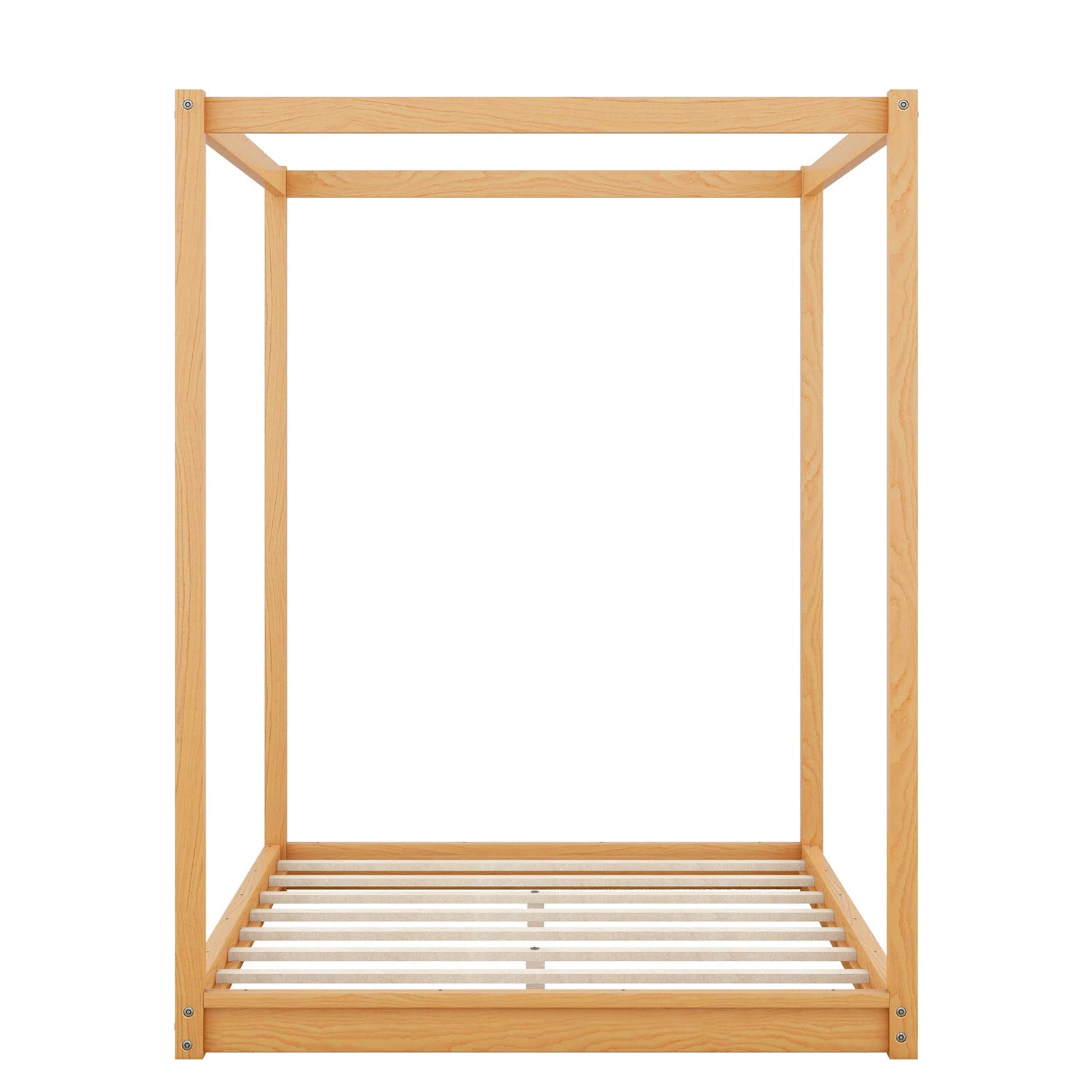 NCKMYB Wooden Canopy Platform Bed, Full Size Floor Bed Frame for Kids Boys Girls, No Spring Box Required (Natural)