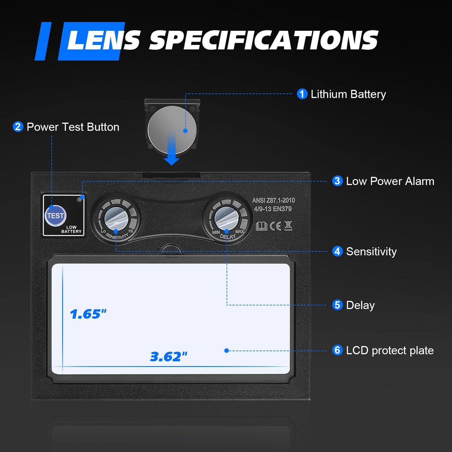 - ★DARKENING FILTER: Our welding helmet with 2 premium sensors , enables welders to adapt to various working environments by controlling the shade of the lens. The welding hood of auto-darkening filter can switch from light to dark in 3/10000 sec. Sensitivity adjustments from ambient lighting sources to maintain the best viewing conditions at all times.