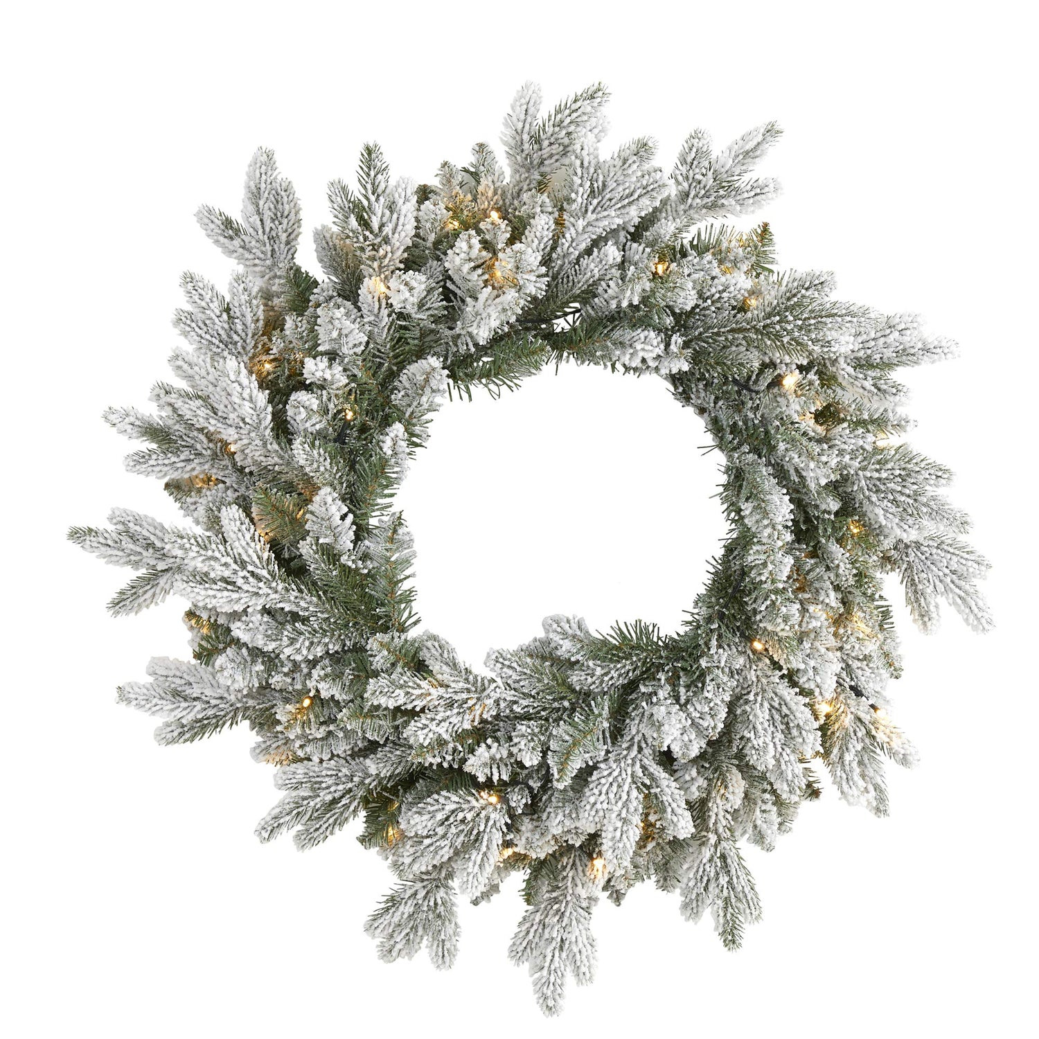 Nearly Natural 24in. Flocked Artificial Christmas Wreath with 50 LED Lights