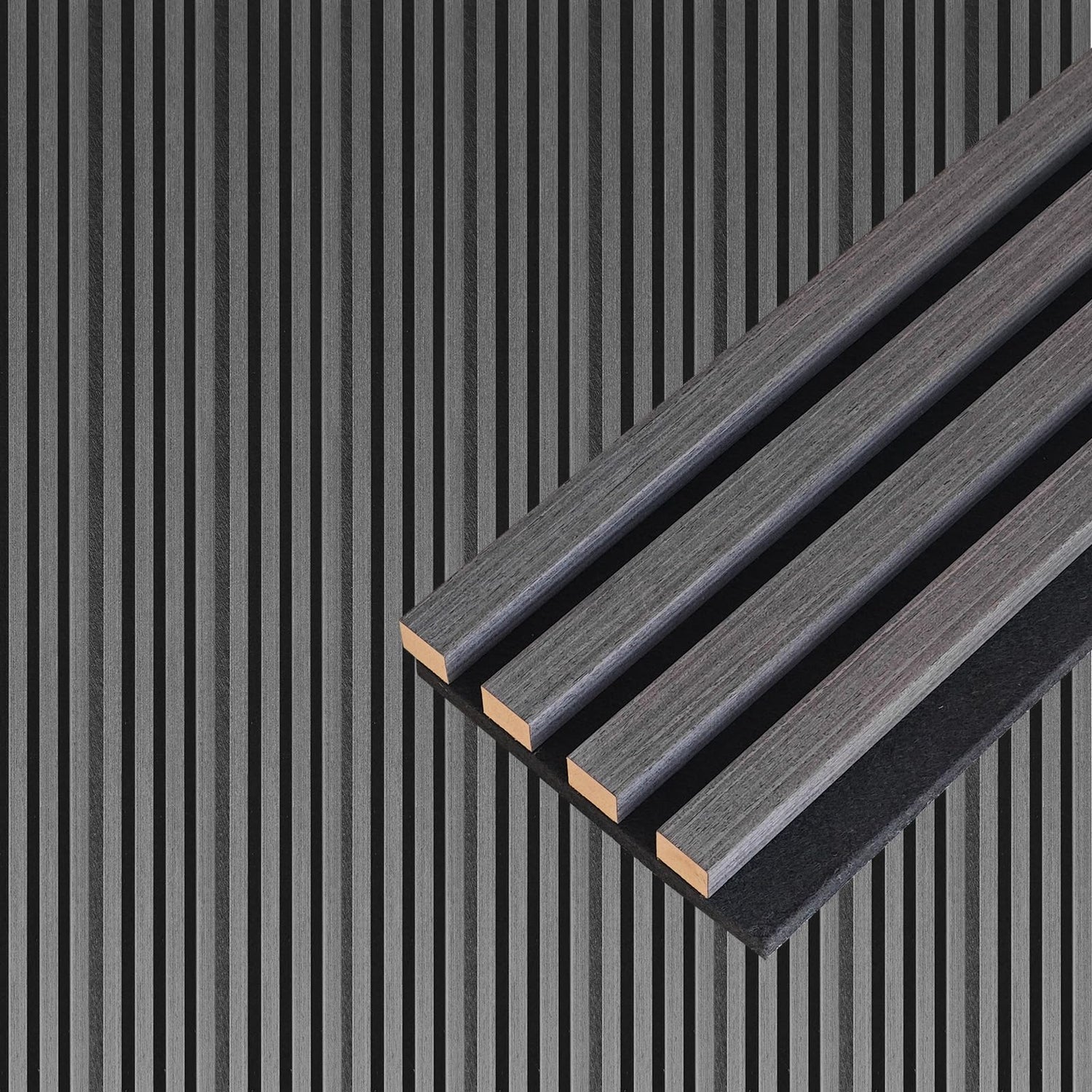 NeatiEase Wood Wall Panels, 9 Feet Acoustic Slat Wall Panels for Interior Wall Decor and Noise Reduction, Decorative Slat Wall Paneling, Dark Gray Oak, 4-Piece