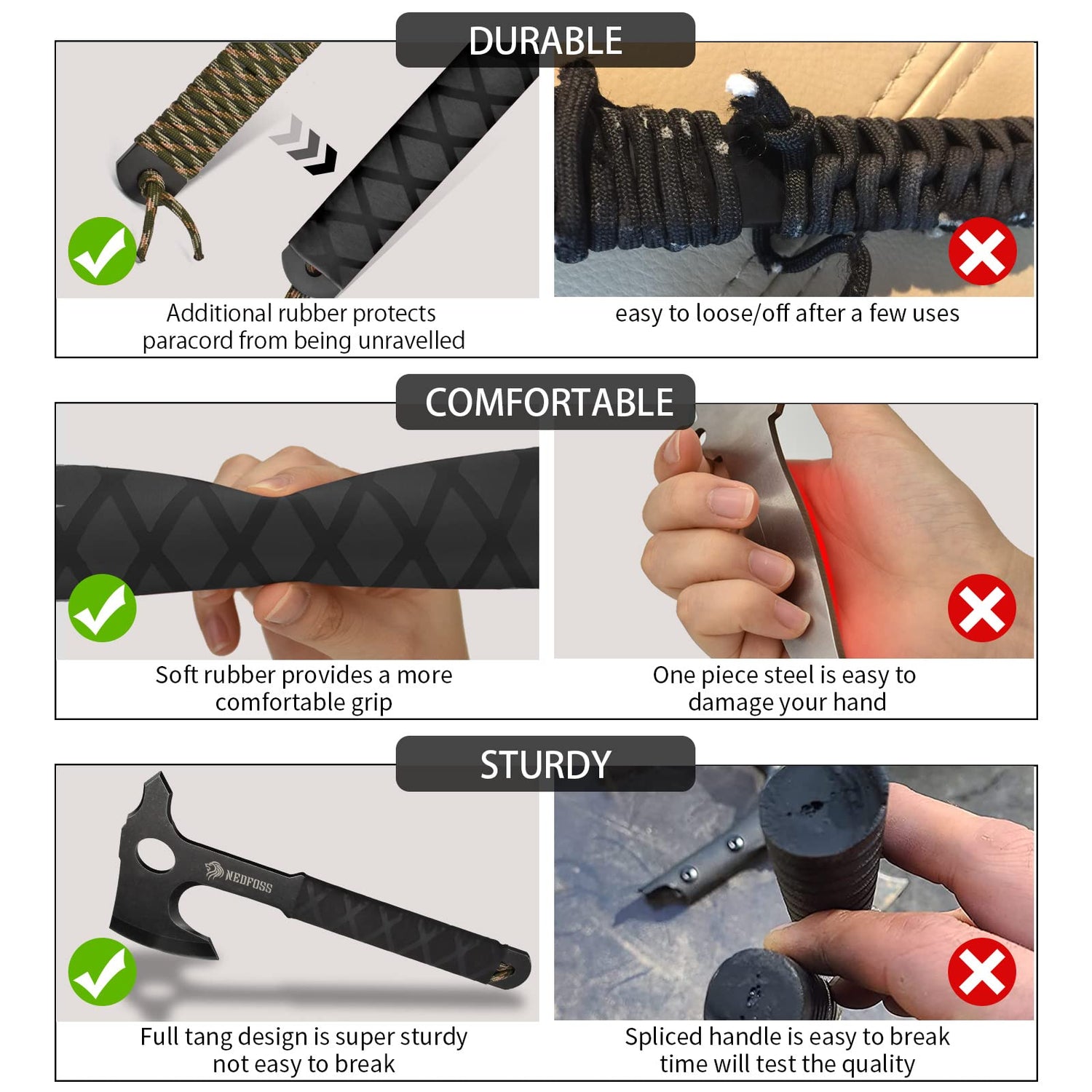 - RUBBER & PARACORD WRAPPED HANDLE: Detachable paracord wrapped handle provides excellent grip and firmness for NEDFOSS throwing axes; Additional rubber protects the paracord from being unravelled and provides a more comfortable grip.