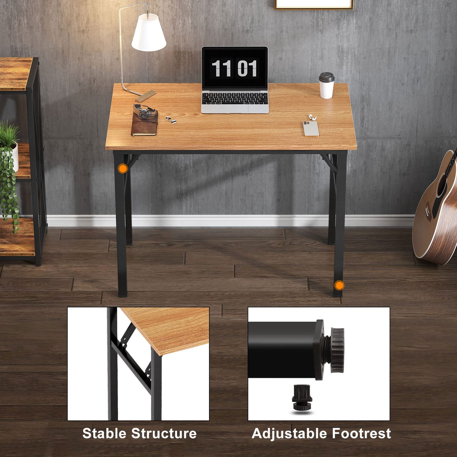 Need Small Computer Desk 31.5 inches Folding Table No Assembly Sturdy Small Writing Desk Folding Desk for Small Spaces, Teak Color Desktop and Black Steel Frame