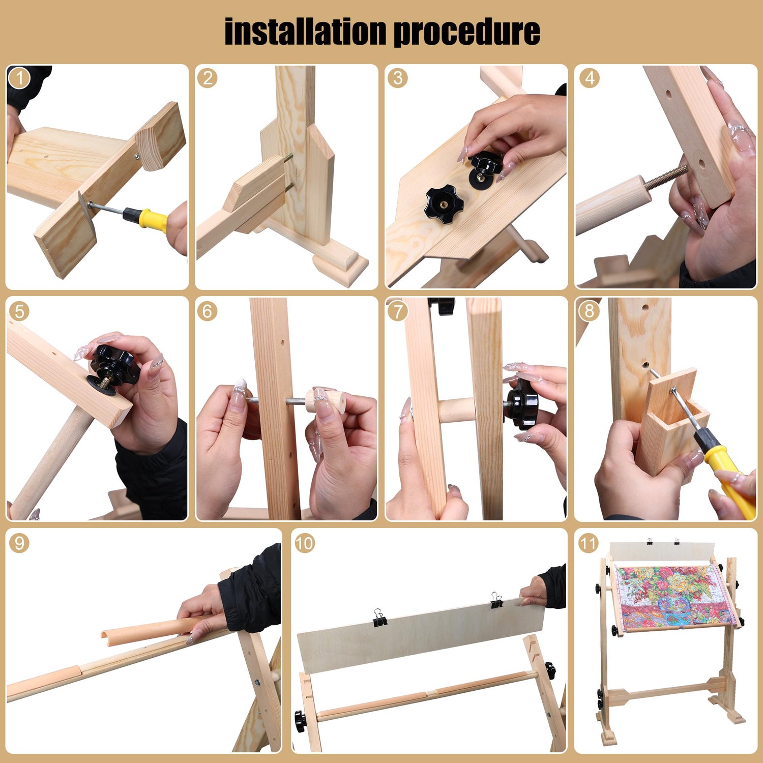 - AFTER-SALES GUARANTEE: We have prepared an English instruction manual for you to guide you how to assemble the embroidery stand. Follow the steps and you will find it easy to install. If you find any problem with the product quality or use, please feel free to contact me. We will take full responsibility for your purchase.