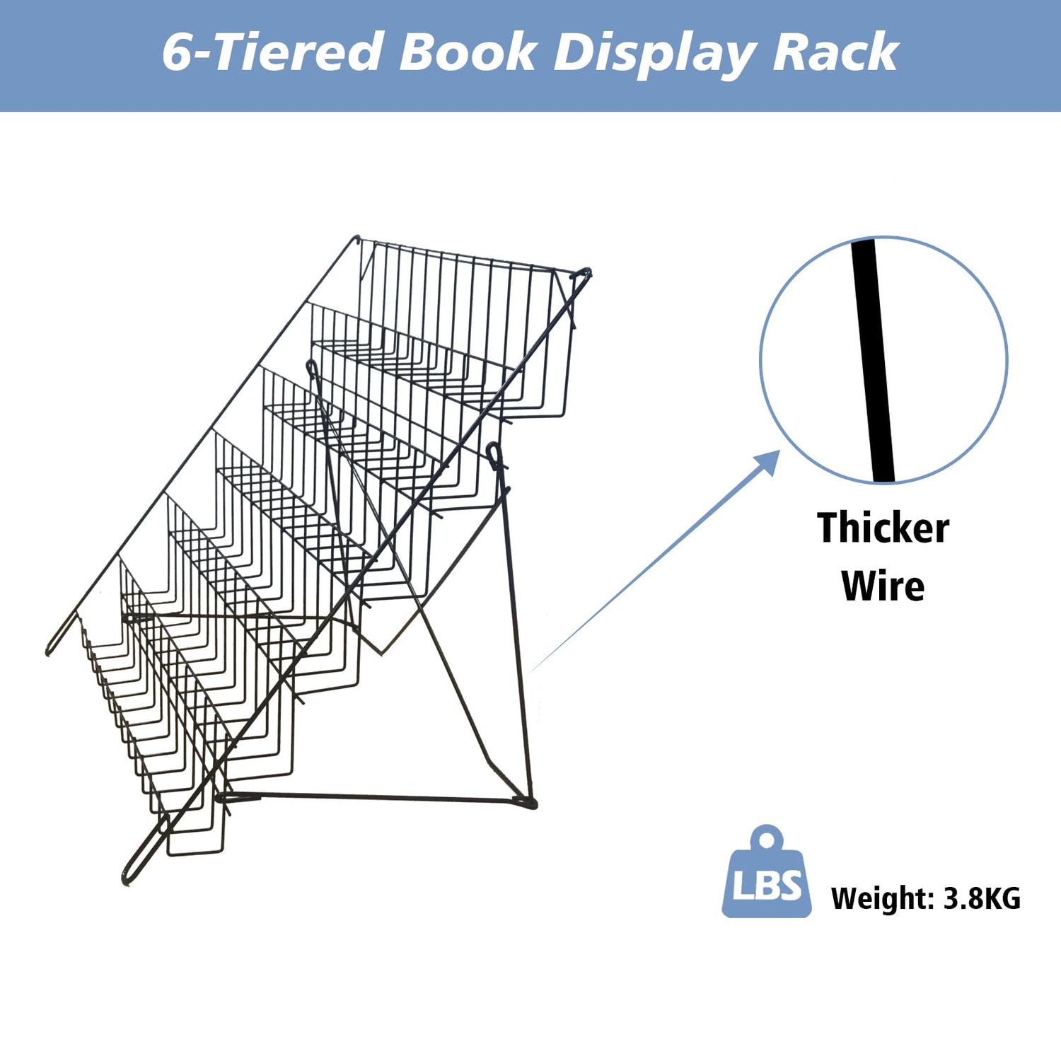 NEESEEYEE 6 Tier Wire Magazine Rack - Comic Book Rack Wide Wire Tabletop Display Rack for Exhibitions Office Table Top Book Brochure Literature Comic Greeting Card Shelf Holder Stand