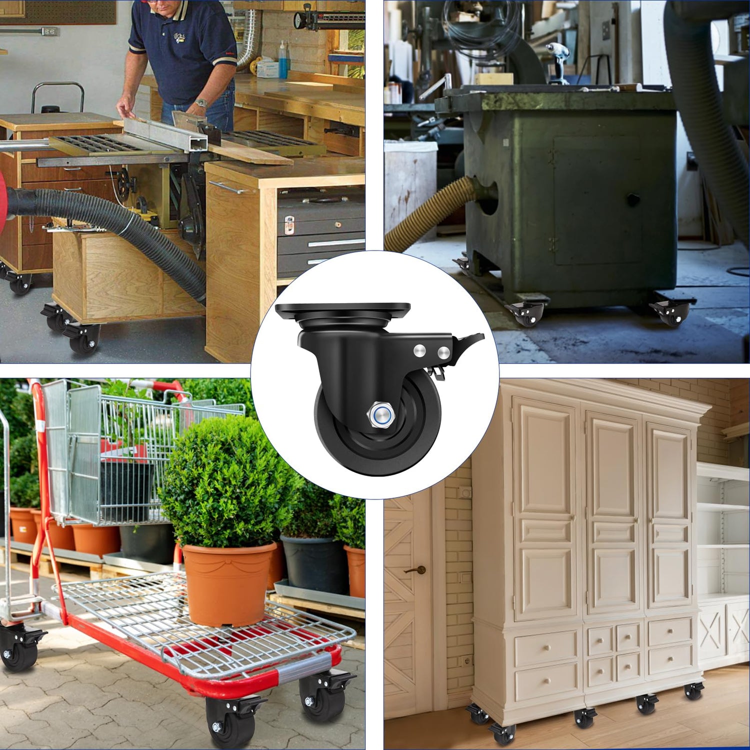 - Durability: Our 4 inch plate swivel caster wheels with brakes are made with high-quality steel materials, which ensures their durability and long lifespan. This means they are a cost-effective solution in the long run, as they do not need to be replaced as frequently as other casters