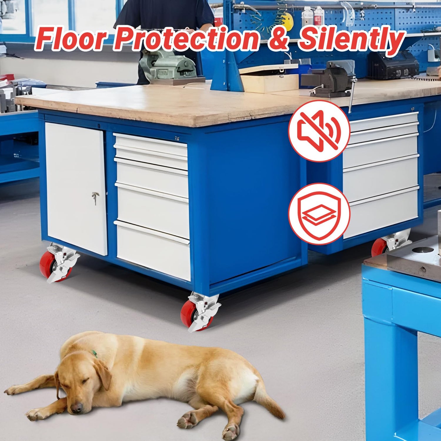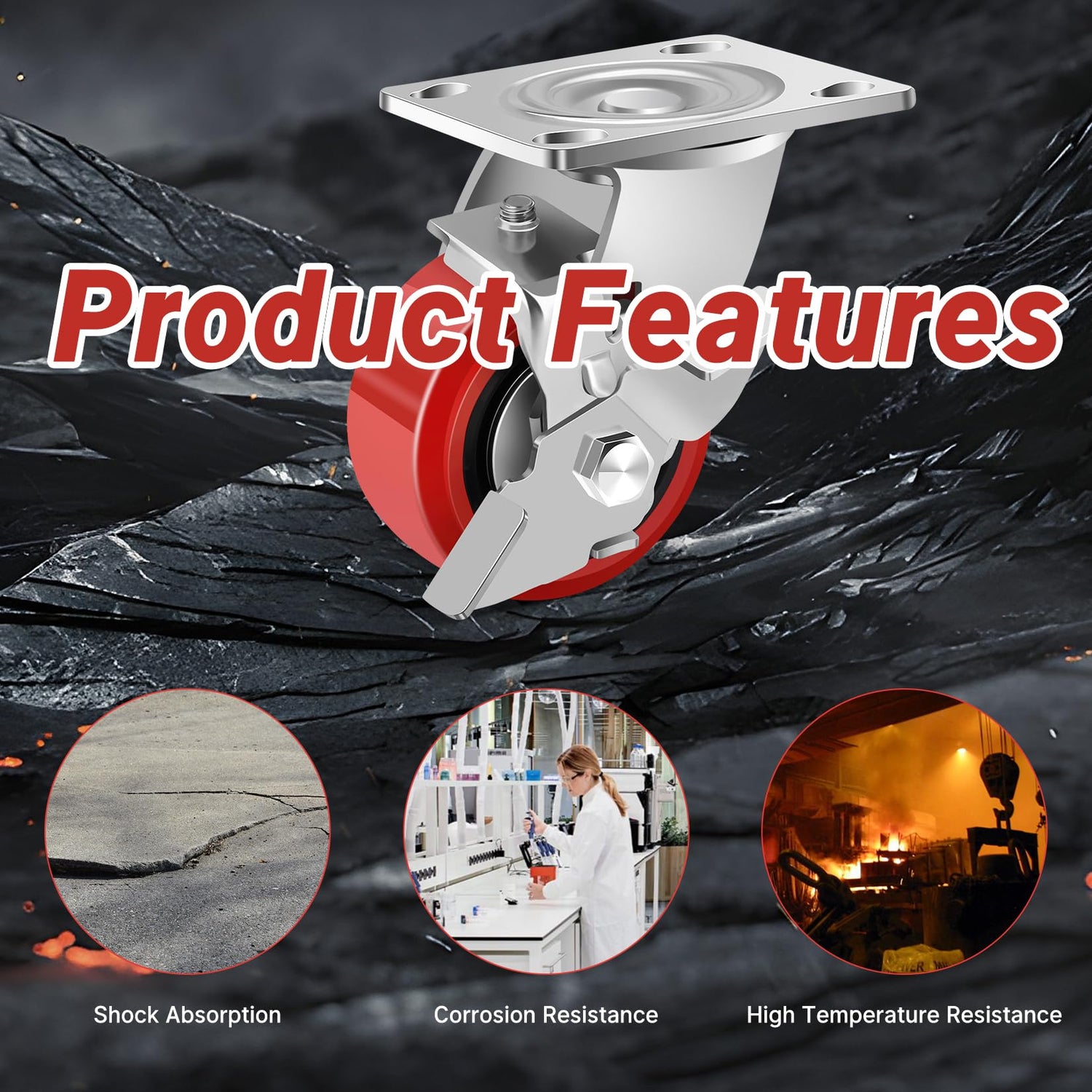 - Dual Ball Bearings: Our heavy-duty industrial-grade polyurethane casters feature two precision ball bearings, which are quieter, more load-bearing, and have a longer service life compared to conventional bearings. Paired with polyurethane wheels, these casters ensure smooth and quiet operation over an extended period, are resistant to damage, and will not scratch the floor