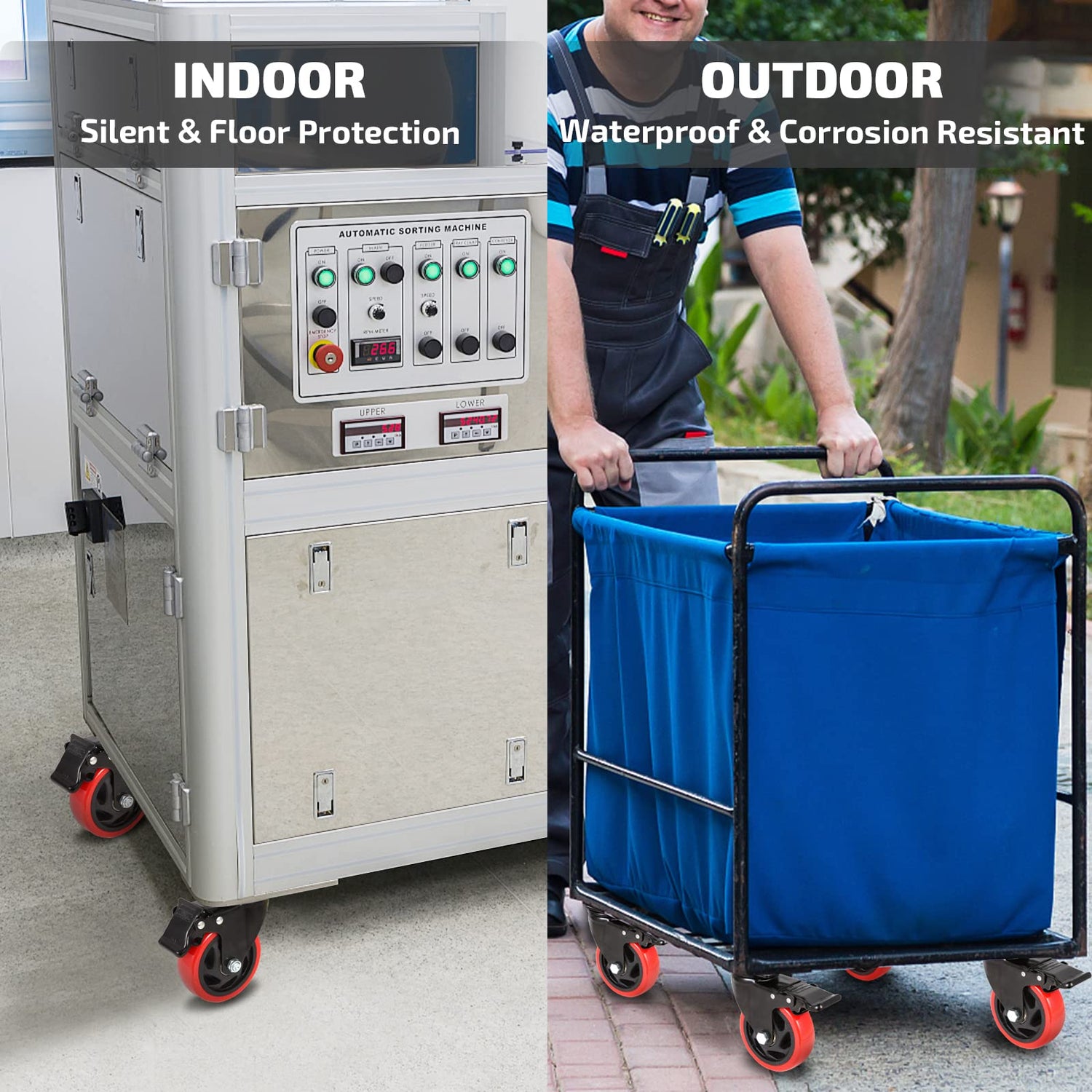 - 【Double Safety Brake & Ball Bearing】The 4 inches caster are equipped with double ball sealed bearings, which reduce friction and increase their speed limit, making them easier to move. They are capable of rotating 360 degrees, and each swivel caster has its own brake that can lock both the wheel and the swivel at the same time, which helps prevent the devices from moving and causing harm to others.