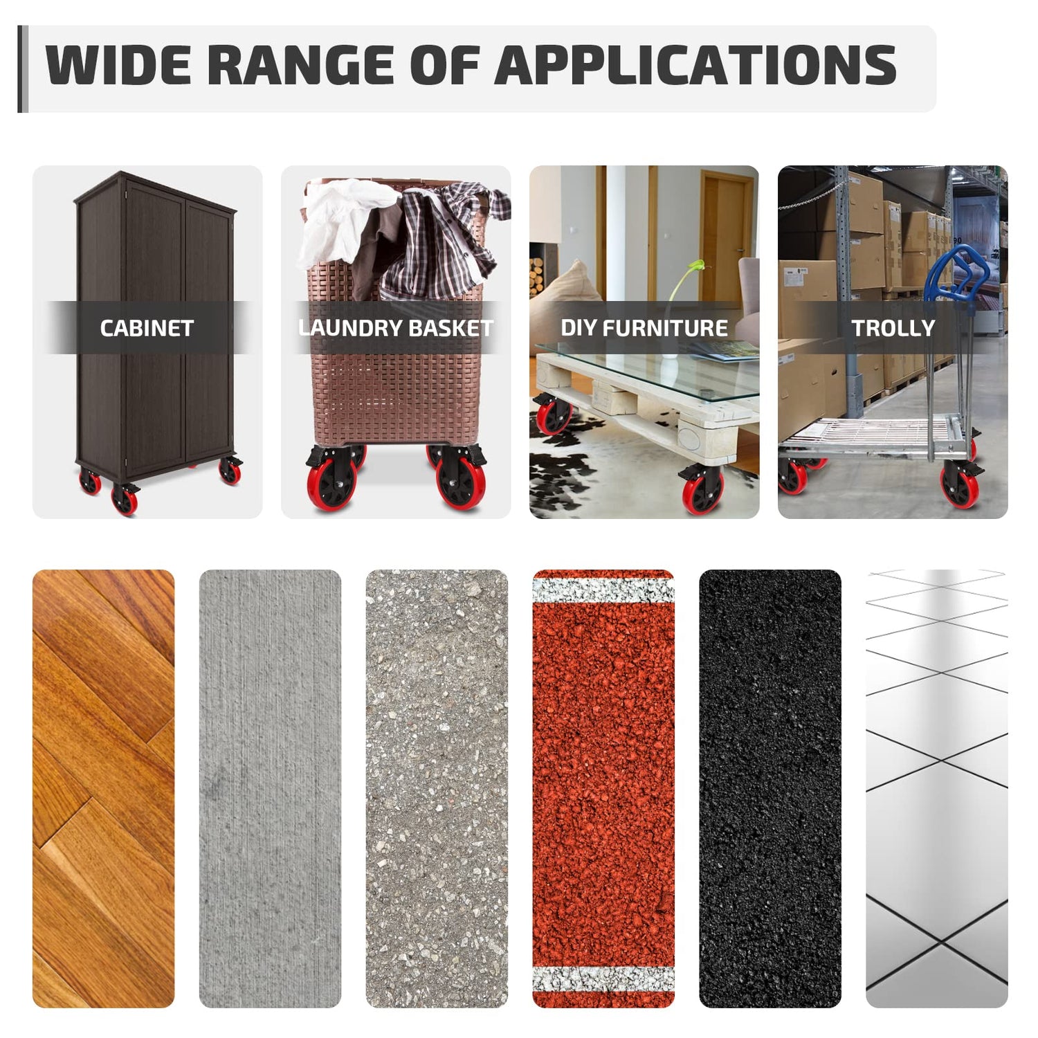 - 【MULTI-USE】These Heavy duty casters in different sizes suitable for furniture, under bed drawers, dresser, musical instrument box, toolbox, cart, light machinery, speaker, cabinet, bracket, workbench, trolley, mobile workstations, and wooden box, desk, frame, etc