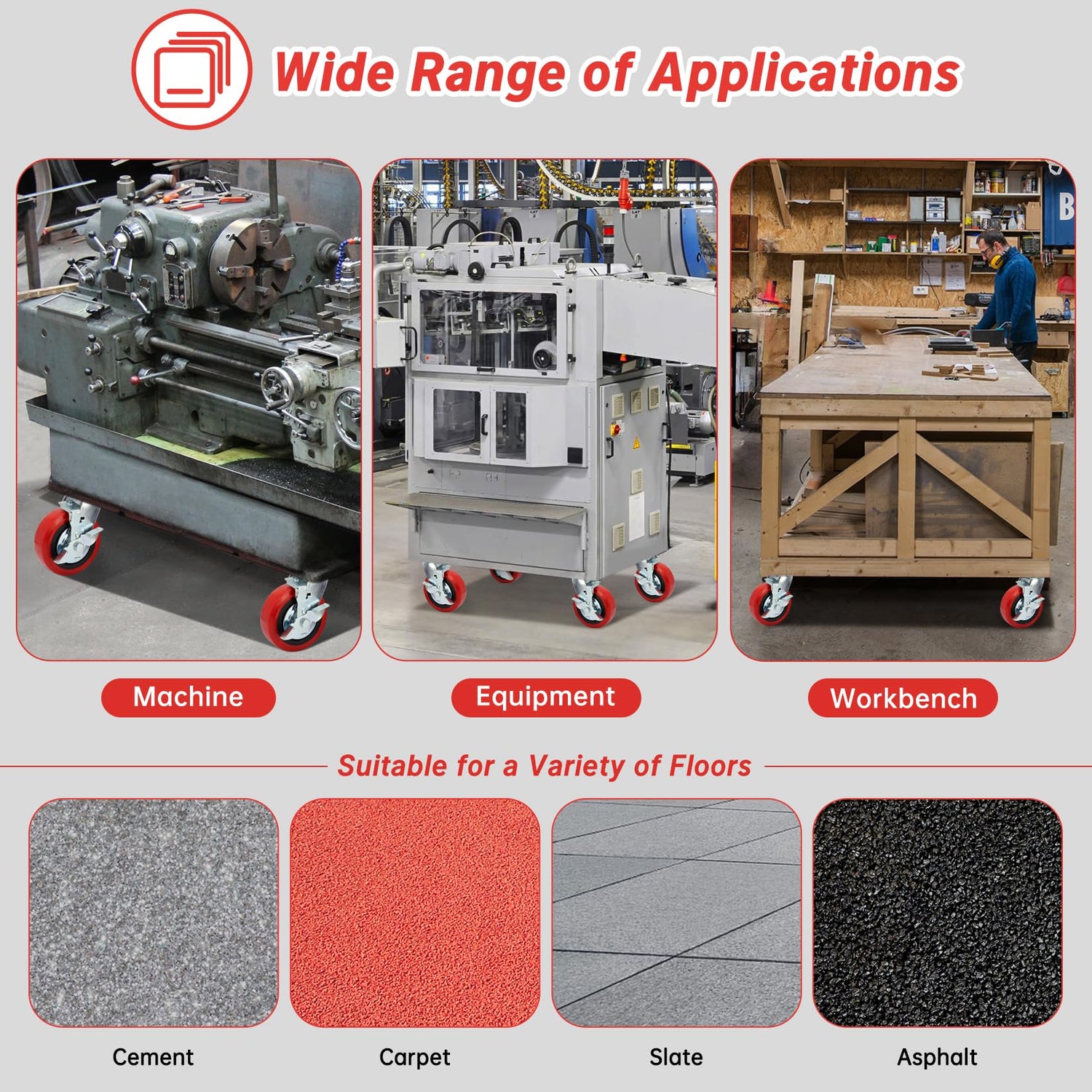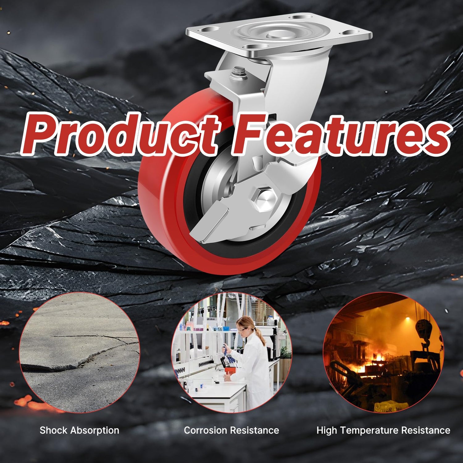 - Heavy Duty Casters: Nefish's 6 Inch Industrial casters wheels top plate is made of stamped carbon steel, combined with a sturdy polypropylene hub and shock-absorbing polyurethane tires, with the ability to withstand strong vertical impact forces. Each caster wheel can support up to 1125 pounds, and a set of 4 wheels can handle up to 4500 pounds