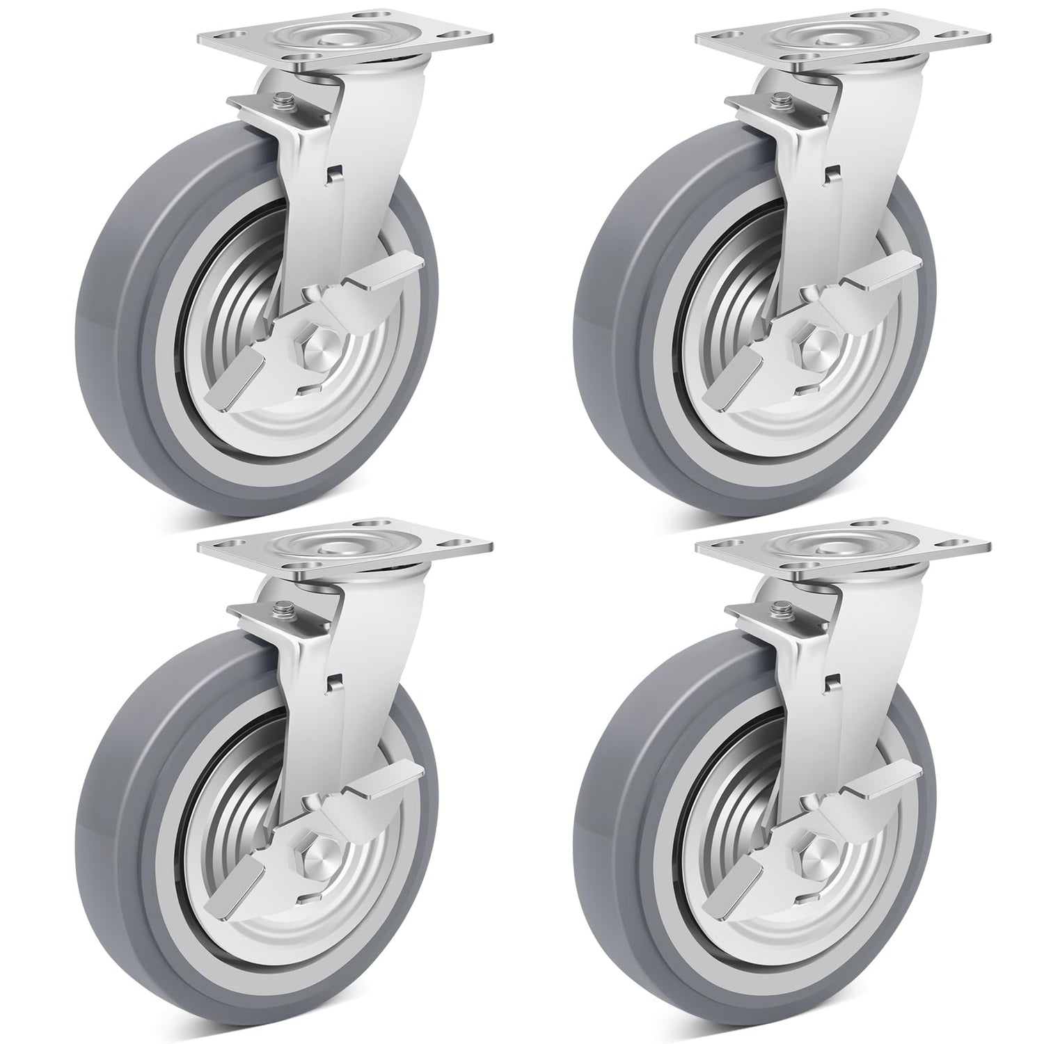 Nefish 8 Inch Heavy Duty Casters Wheels, Industrial Grade Thermoplastic Rubber Casters with Brake 6000 LBS, Ball Bearing Plate Swivel Castors Set of 4, Casters Wheels for Hand Truck, Industrial