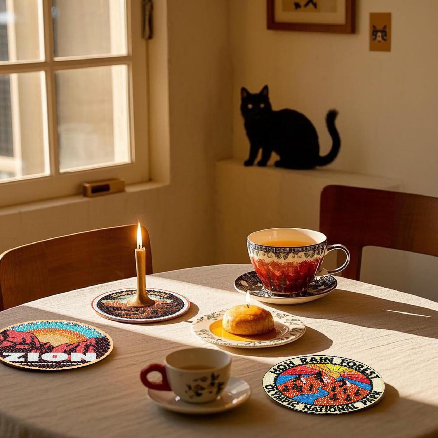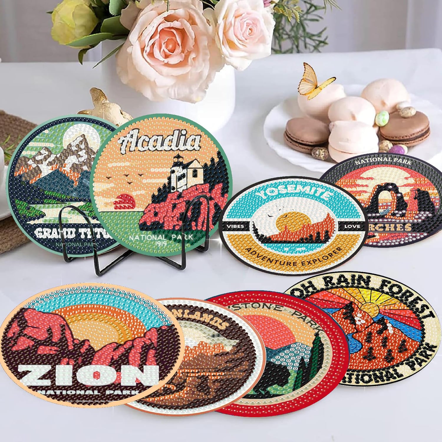 NEGEKFKX 8 Pcs National Park Diamond Art Painting Coasters Kits, Coaster with Holder for Adults, Non-Slip DIY Dot Paint Craft Kits,5D Full Drill DIY Diamond Dot Gem Art Kit Home Decor Arts Craft