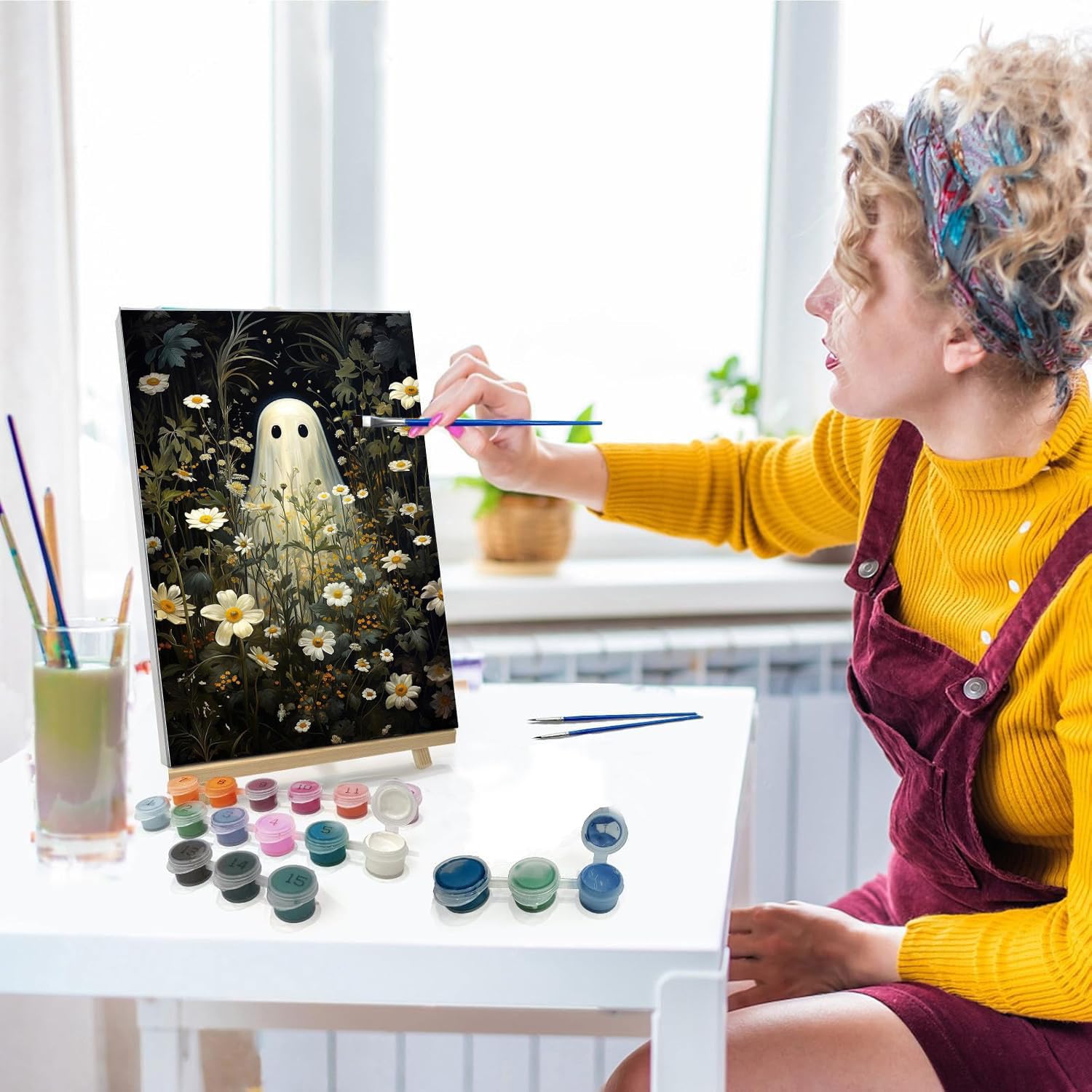 NEGEKFKX Halloween Paint by Numbers Kit for Adults Beginner with Frame,Horror Easy Adult Paint by Number Kits on Canvas DIY Painting for Beginners Art by Numbers for Home Wall Decor 12x8 Inch