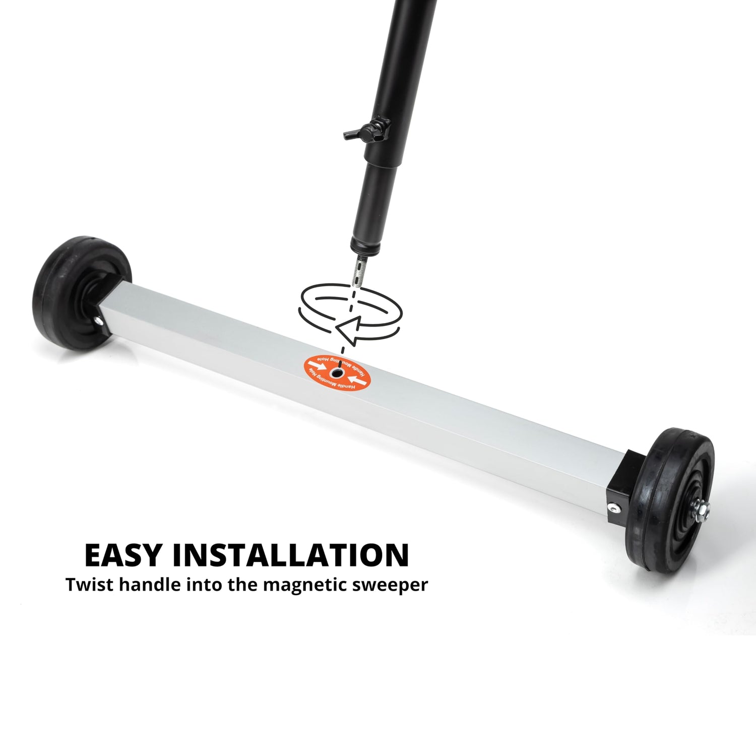 - COMPACT & EFFICIENT: Easy to carry magnet broom with a 4.5 pound pull force can double as a pick up tool. Magnetic rollers are lightweight and agile, perfect for fast clean up of excess metal parts.