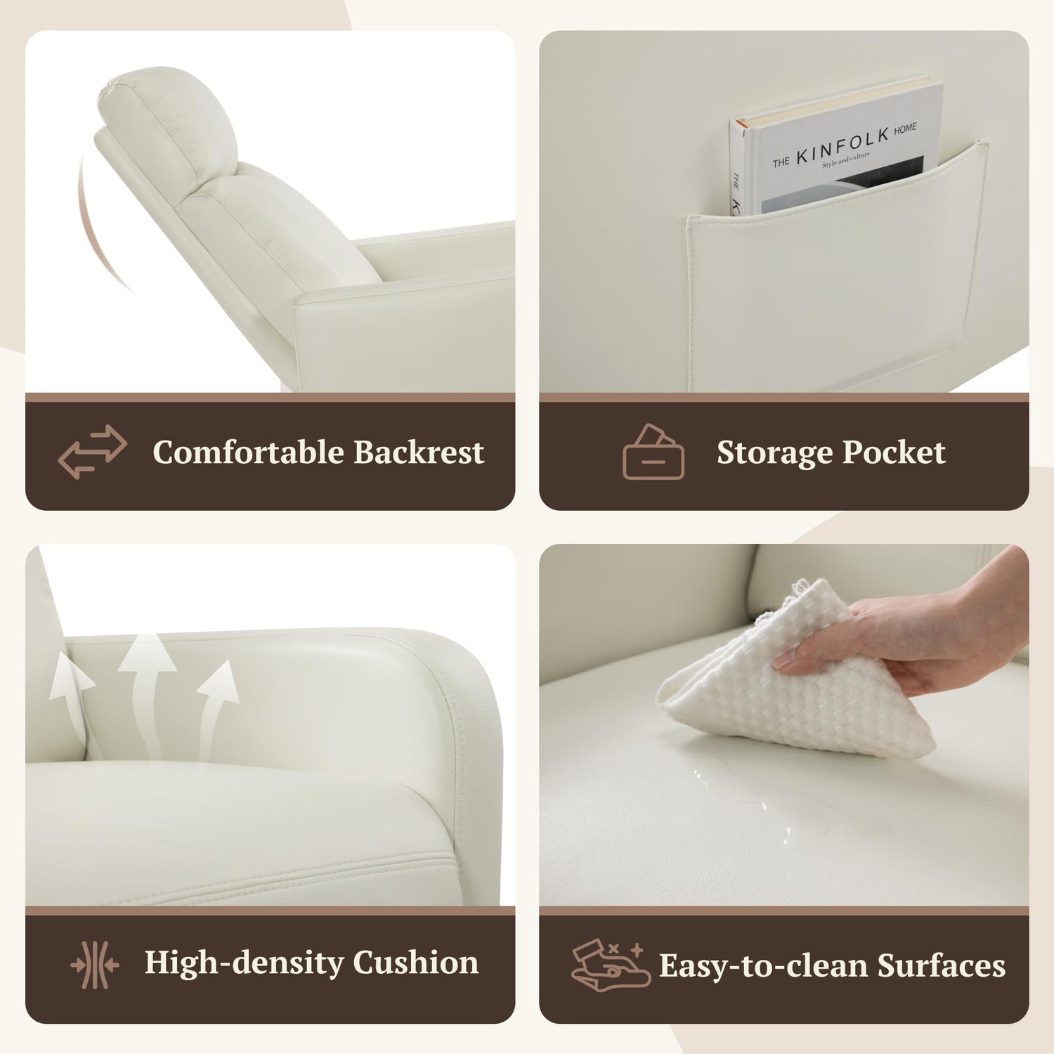 Neioml Swivel Rocking Recliner Chair for Small Space, Manual Swivel Glider Recliner for Nursery,RV,Rocking Recliner with Footrest and Side Pocket,Breathable Leather,Beige