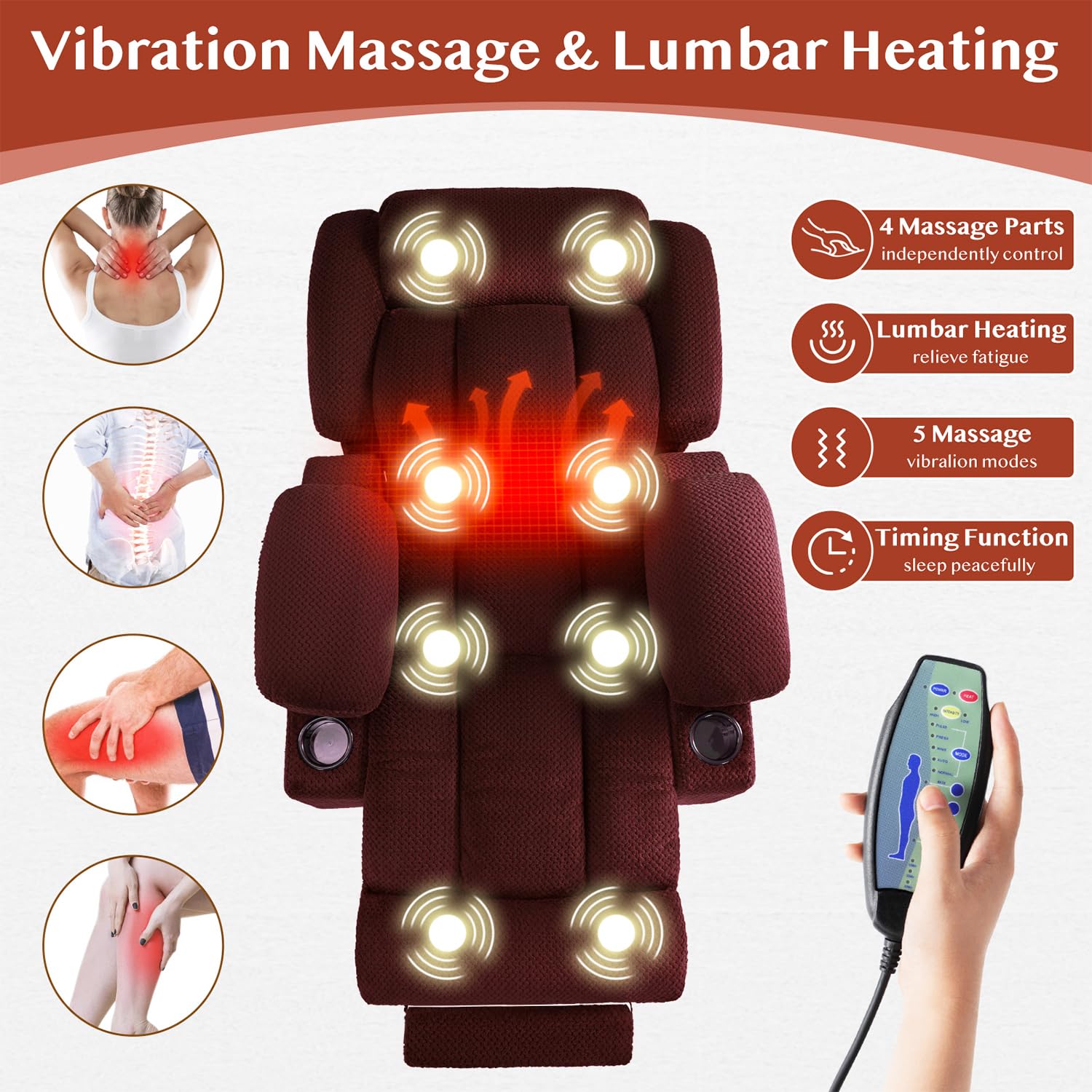 - Vibration Massage & Lumbar Heating: Relax in comfort with 8 vibration massage points targeting your back, lumbar, thighs, and legs. The advanced lumbar heating system warms between 113℉ and 140℉, perfect for soothing relief and cozy relaxation