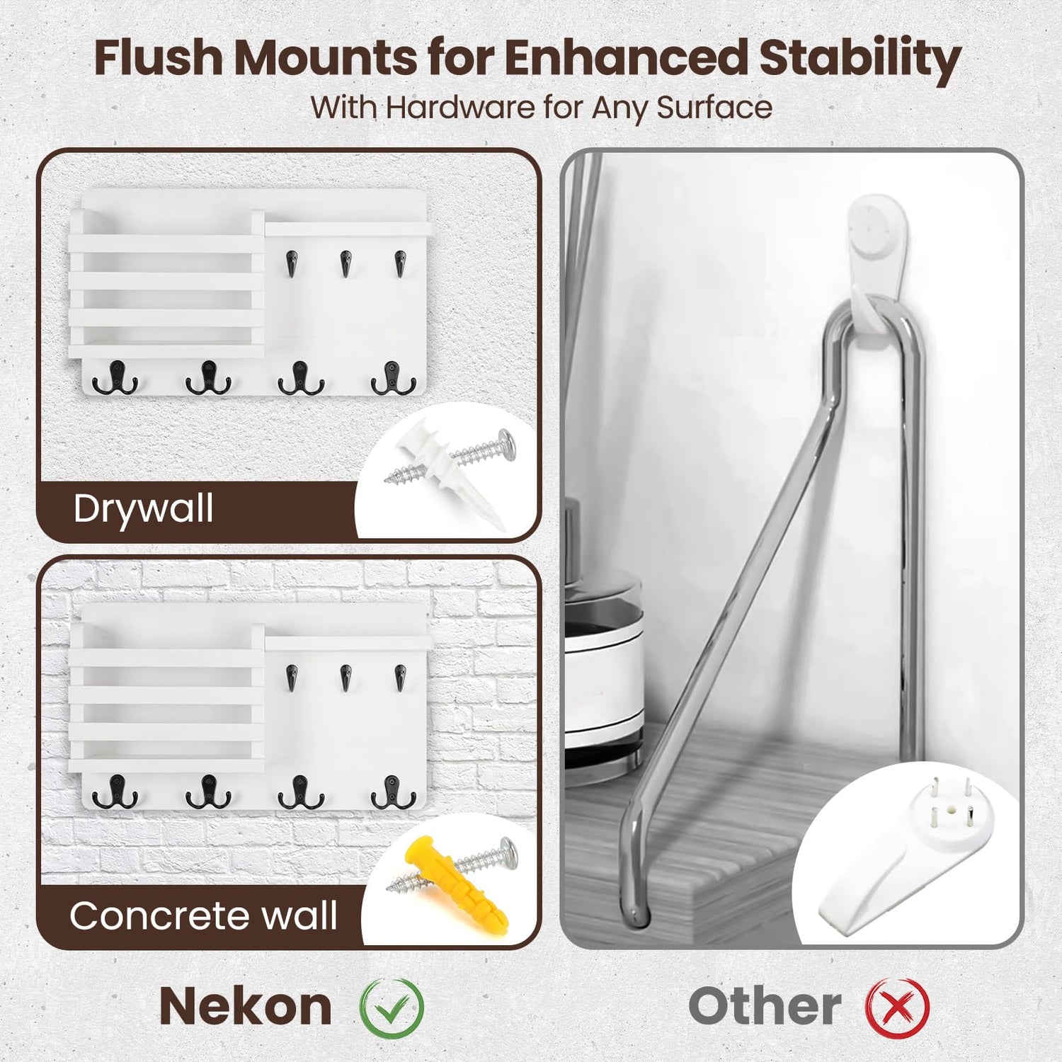 • INCLUDES MOUNTING HARDWARE so you can begin using your Nekon Mail and Key Holder for wall display at once. You will receive 3 concrete anchors, 3 drywall anchors and 3 screws for easy and reliable installation in minutes.