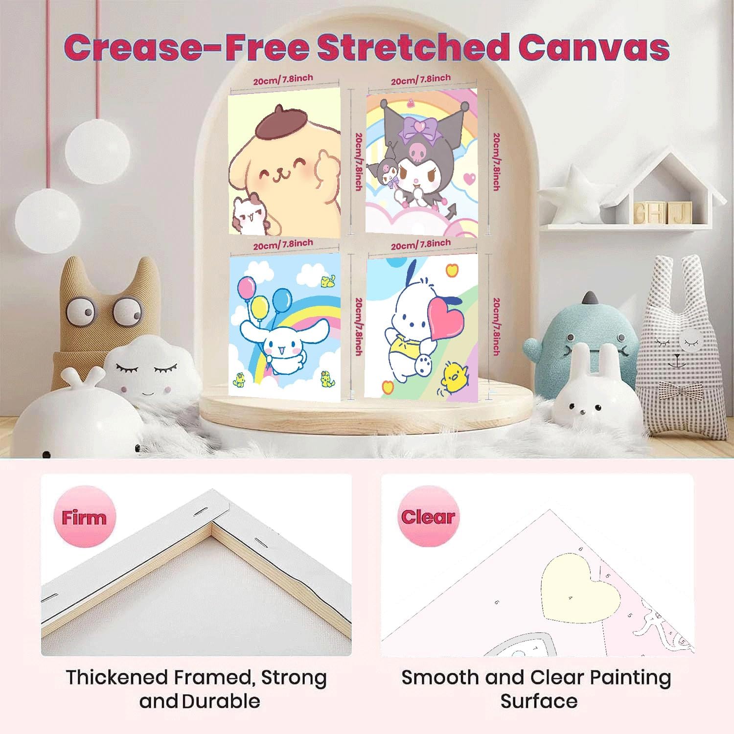 nekpiahu 6 Pack Cartoon Paint by Numbers for Kids with Framed Canvas-Cartoon Paint by Numbers for Kids Ages 4-8-12, Kid Paint by Number Crafts Kits for Home Wall Decor GIF 8X8incht(with Wooden Easel)