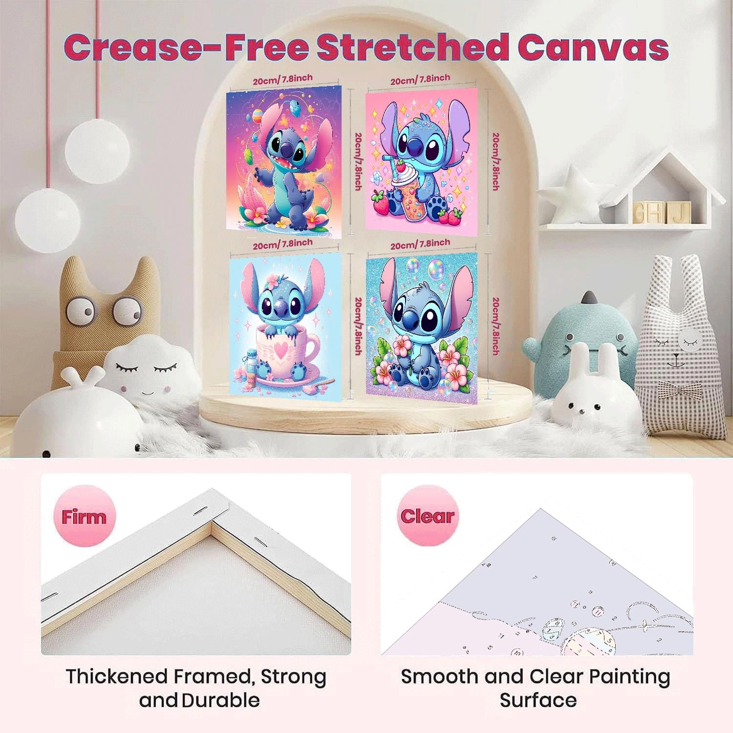 nekpiahu 6 Pack Cartoon Paint by Numbers for Kids with Framed Canvas-with Wooden Easel, Paint by Number for Kids Ages 4-8-12, DIY Easy Acrylic Oil Painting Kits for Home Wall Decor (8X8inch)