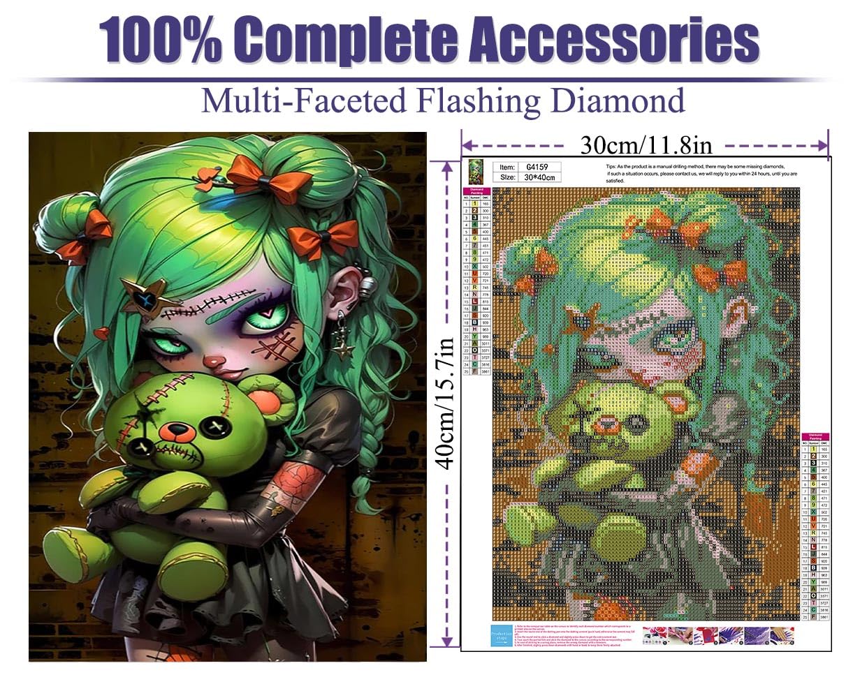 - 【Diamond Art Painting Kits】Goth diamond painting including 1x high definition painting canvas(12x16inch);1 color coded rhinestones;1point diamond painting pen;1craft tray;1clay;10self-sealing bags.There are 30% excess drill beads in each section,definitely no worry of running out or not having enough.Note:Frames NOT included.
