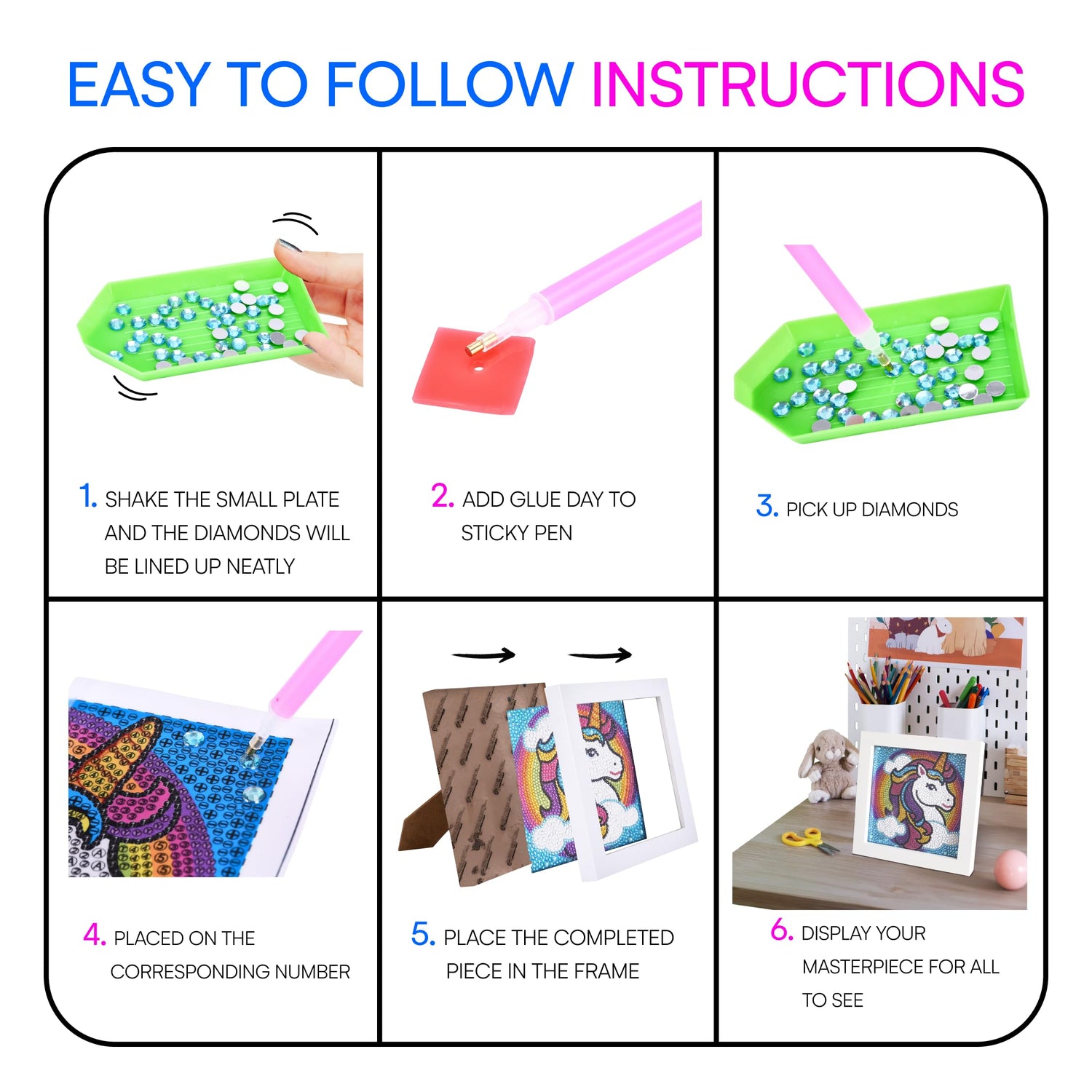 - UNICORN THEME: Spark creativity with our Unicorn-themed diamond painting kits for kids. Cute, magical, and fun—perfect for crafting enchanting, sparkling art they'll love.