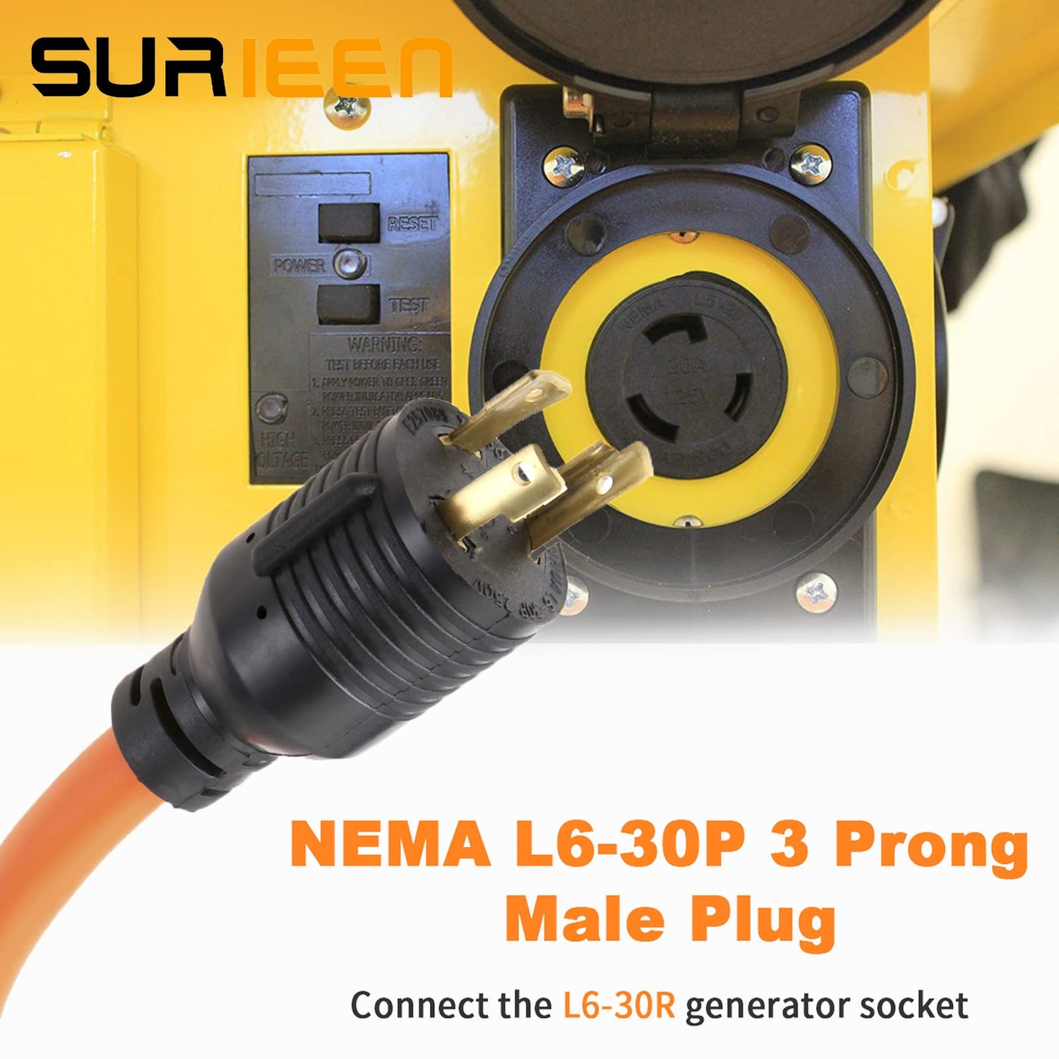 - √【EASY TO USE】The 3 Prong generator plug adapter cord is very simple to use. L6-30P to 6-50R 250V 30 Amp Twist Lock 3 Prong Male Plug to 50 Amp 3 Prong Female Receptacle Generator Welder Dryer EV Charger Power Cord Adapter.