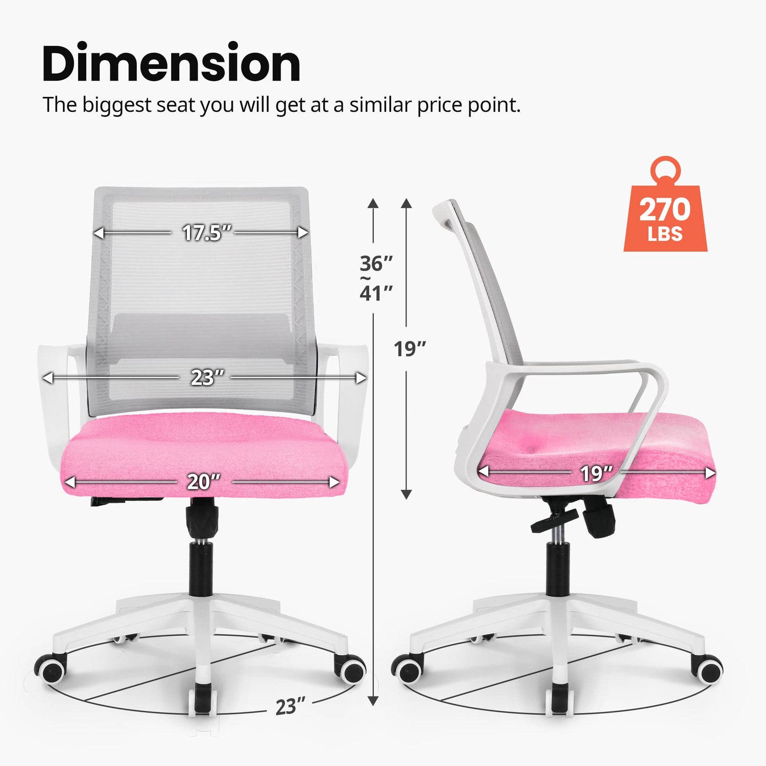 NEO CHAIR Office Desk Chair Ergonomic Mid Back Mesh with Lumbar Support Comfy Cushion Swivel Adjustable Height Gaming Chairs for Home Office (Pink)