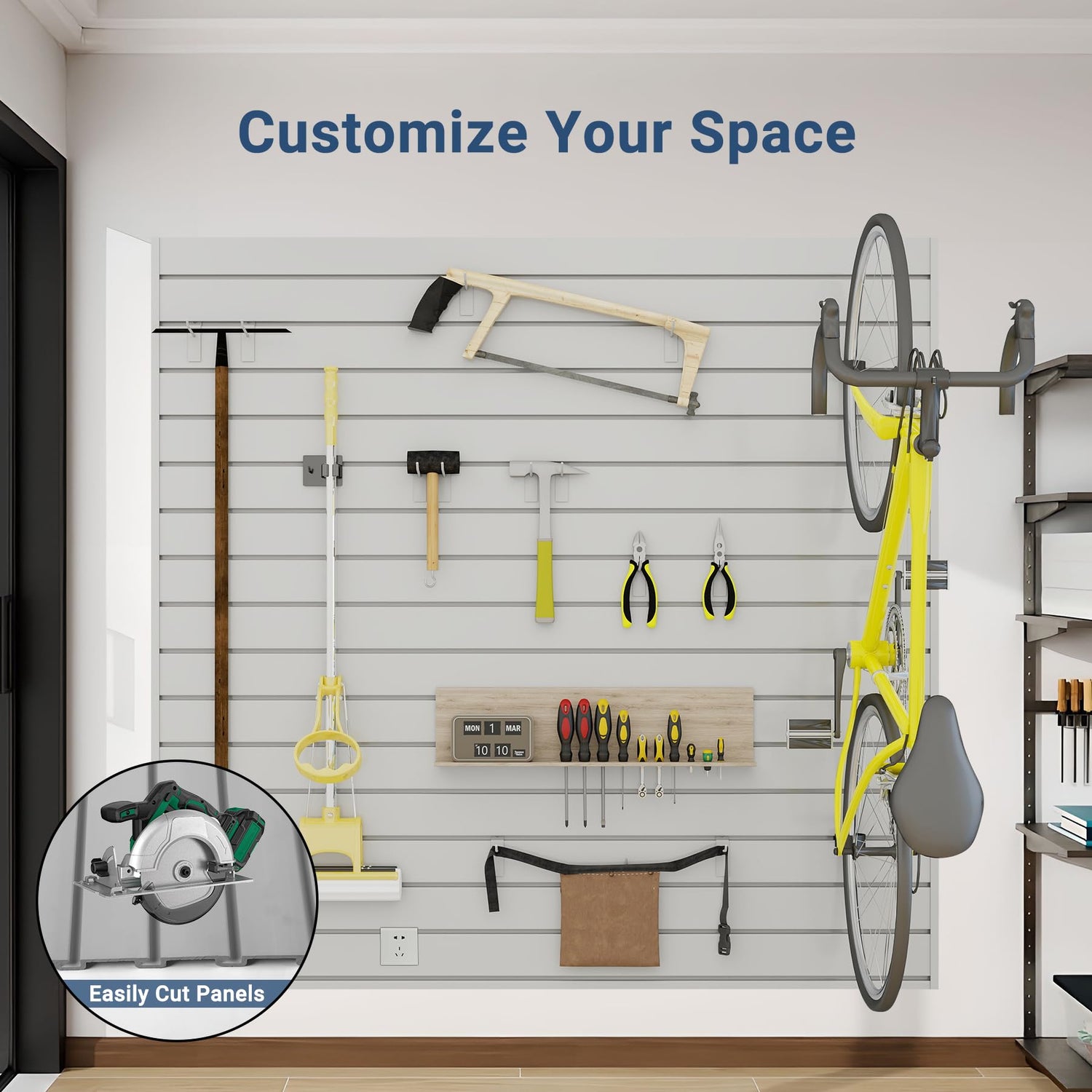 - Customize Your Space: You can easily cut the slatwall garage rack storage organization to any desired size or combined into larger sections and use slatwall hooks, brackets, shelves, and baskets to organize and showcase items on your wall to create the space you've dreamed of