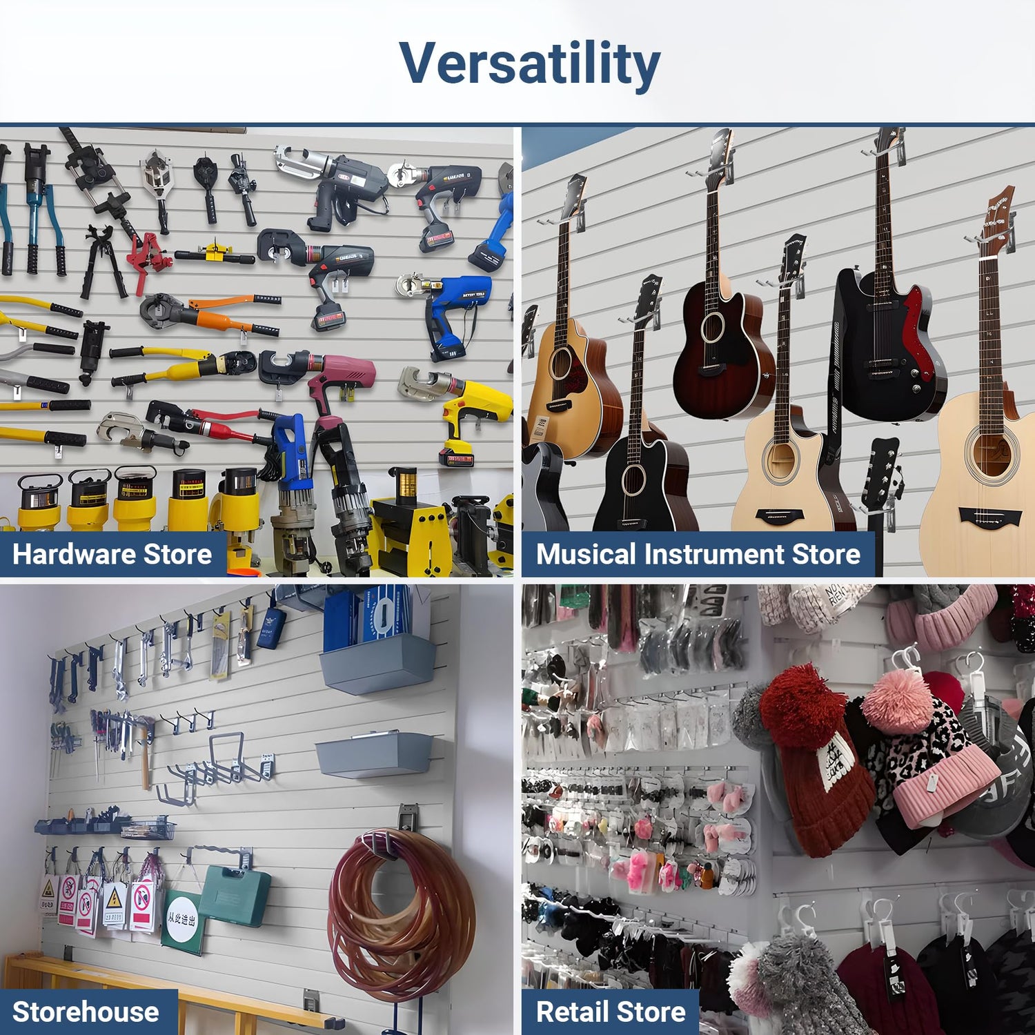 - Fit Standard Slatwall Accessories: Our slat boards are designed with a 3" groove and T-channel suitable for most of slatwall hooks. And the side lids provided allow you to freely move the hook, convenient for operation