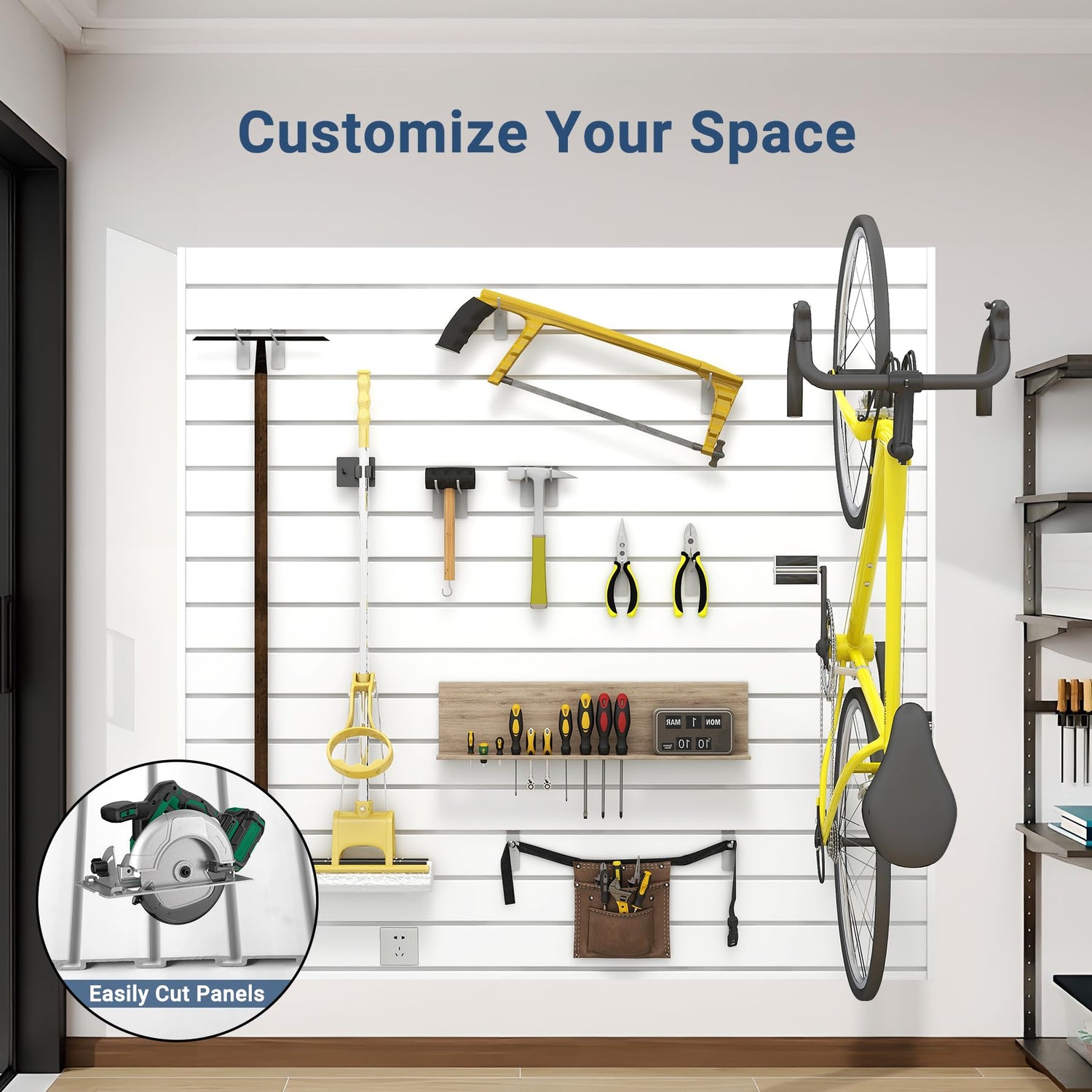 - Customize Your Space: You can easily cut the slatwall garage rack storage organization to any desired size or combined into larger sections and use slatwall hooks, brackets, shelves, and baskets to organize and showcase items on your wall to create the space you've dreamed of