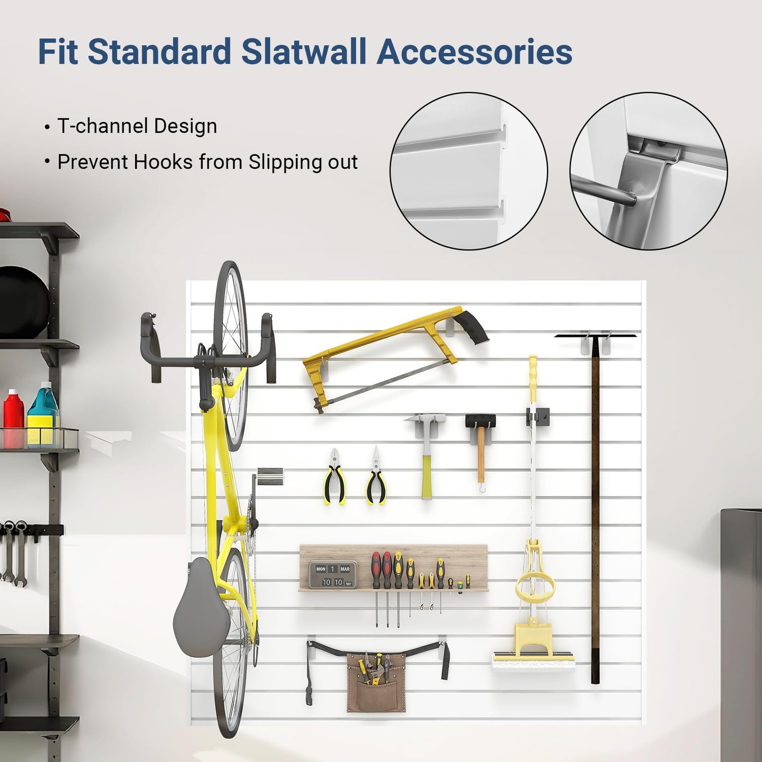 - Fit Standard Slatwall Accessories: Our slat boards are designed with a 3" groove and T-channel suitable for most of slatwall hooks. And the side lids provided allow you to freely move the hook, convenient for operation