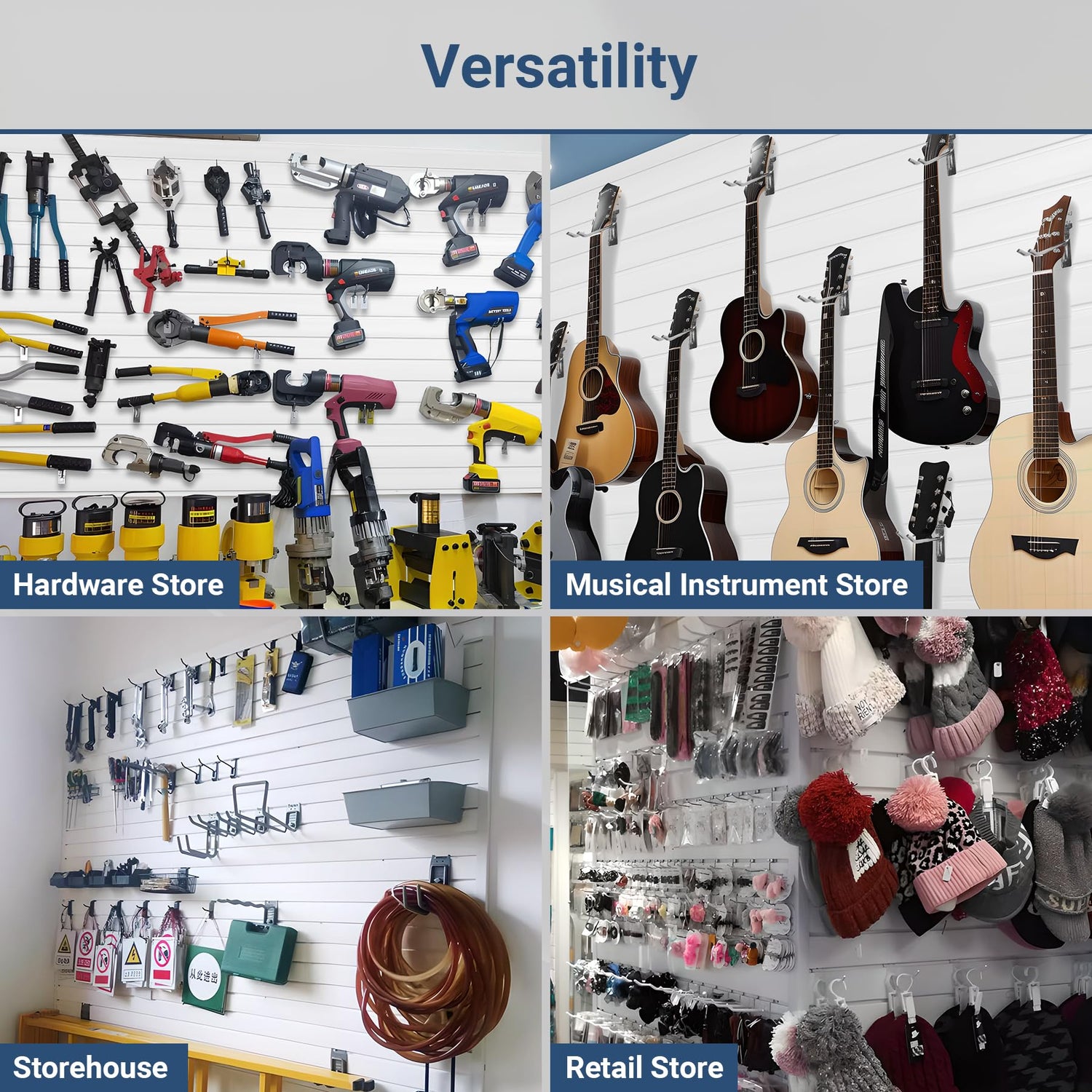 - Wide Applications: Our interlocking slatwall system provides the ideal storage solution for organizing tools in a garage or hardware shop, merchandising in a retail or convenience store, landscaping in a factory, keeping the space organized and efficient