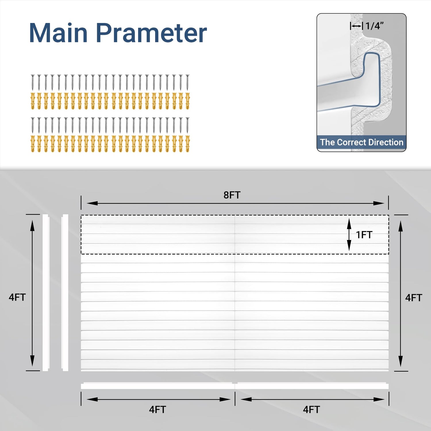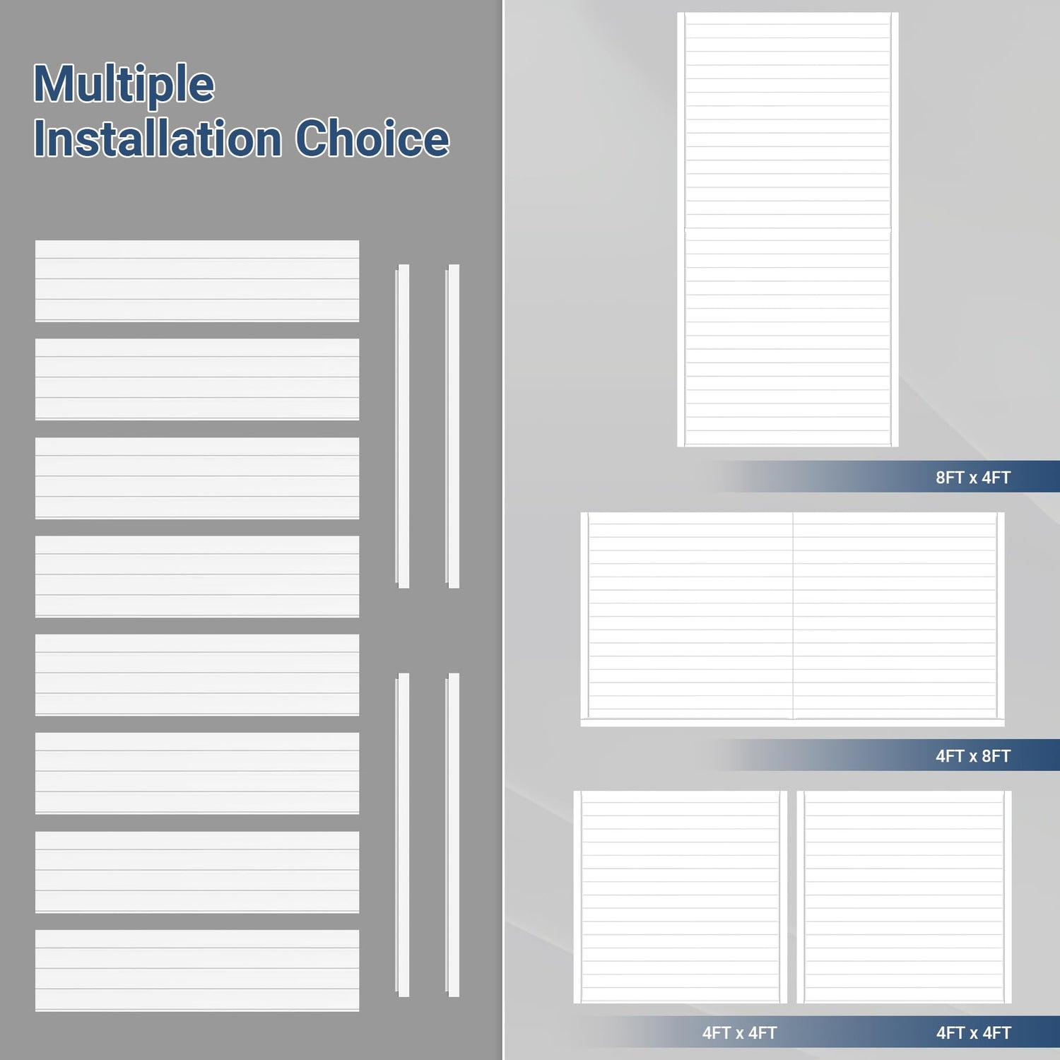 - Simple and Free Assembly: Our garage slat wall storage system includes 8PCS 4ft x 1ft slatwall panels; You can easily and independently complete the installation without difficulty(Note: Hook Not Included)