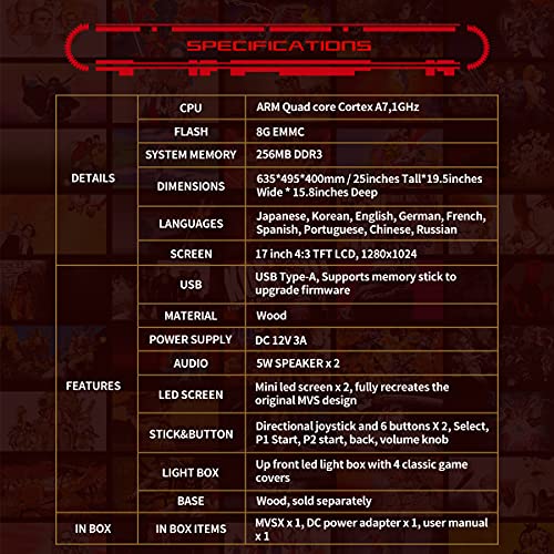 - [MVSX Arcade Accessories Available]: You can get MVSX riser B0B1QF2JNS, MVSX stool B09D7CD8NC from our store. Any questions, please contact us.