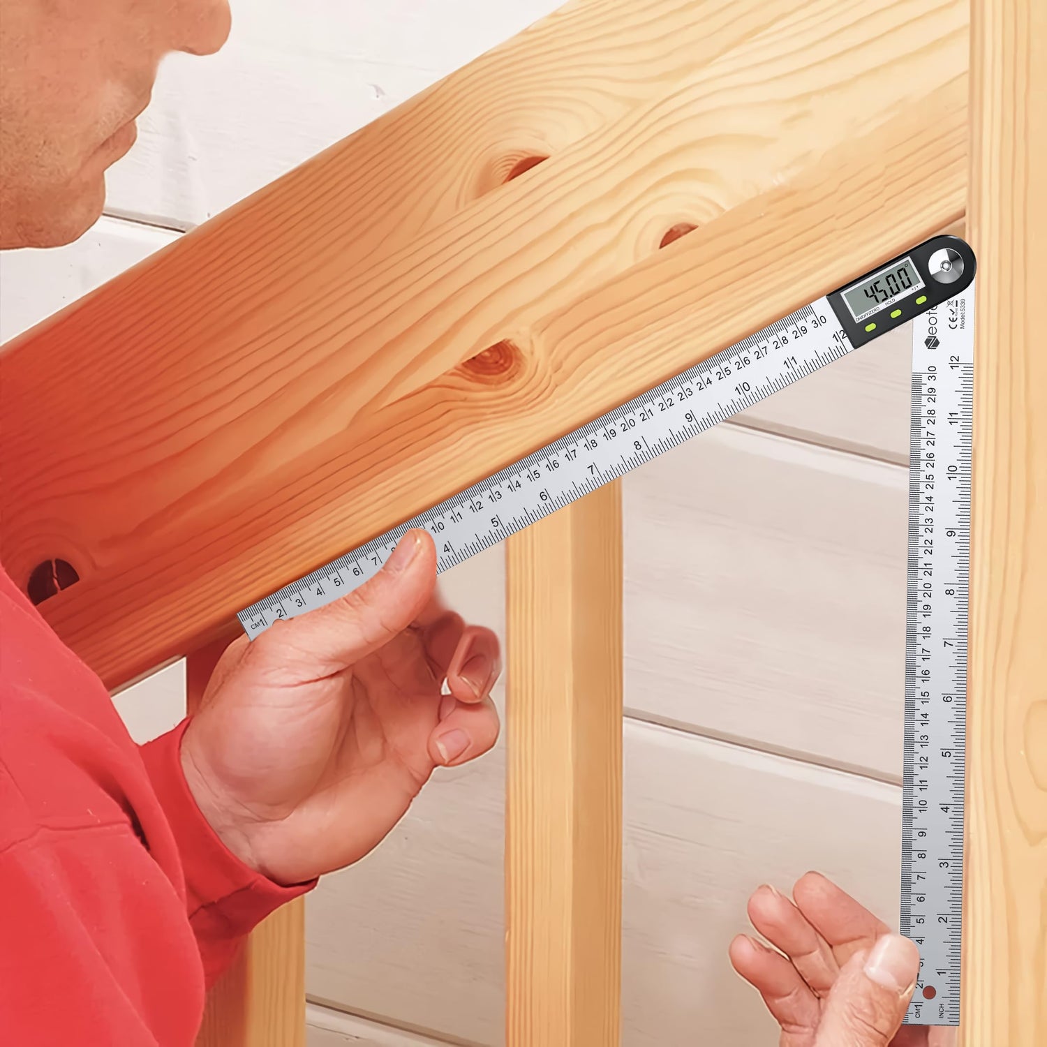 - 【Multi-functional Design】 Combined with Stainless Steel Ruler and Angle Sensor, Measuring Angle and Length; Hinge Mechanism on the Angle Ruler Allows Full 360- degrees to Measure Inside and Outside