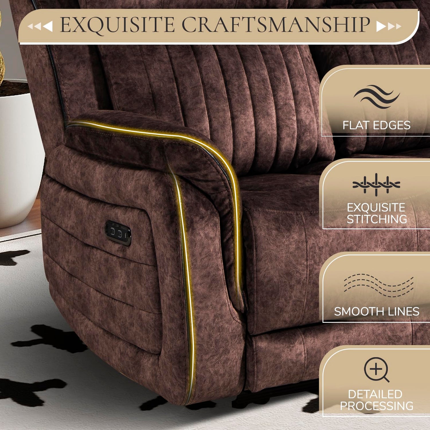 Neptane Power Reclining Sofa Set with Adjustable Headrest, Electric Reclining Sofa and Loveseat with USB/Type-C Ports, Reclining Living Room Set for Home Theater(Brown, Loveseat+Sofa)