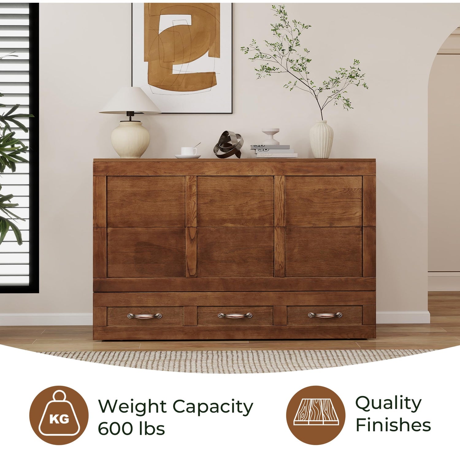 Nesbsakte Queen Murphy Bed Cabinet: Hidden Space-Saving Solid Wood Cabinet Bed with USB Charging for Beedrooms and Apartments(Mattress Not Included) Yellow Brown-15
