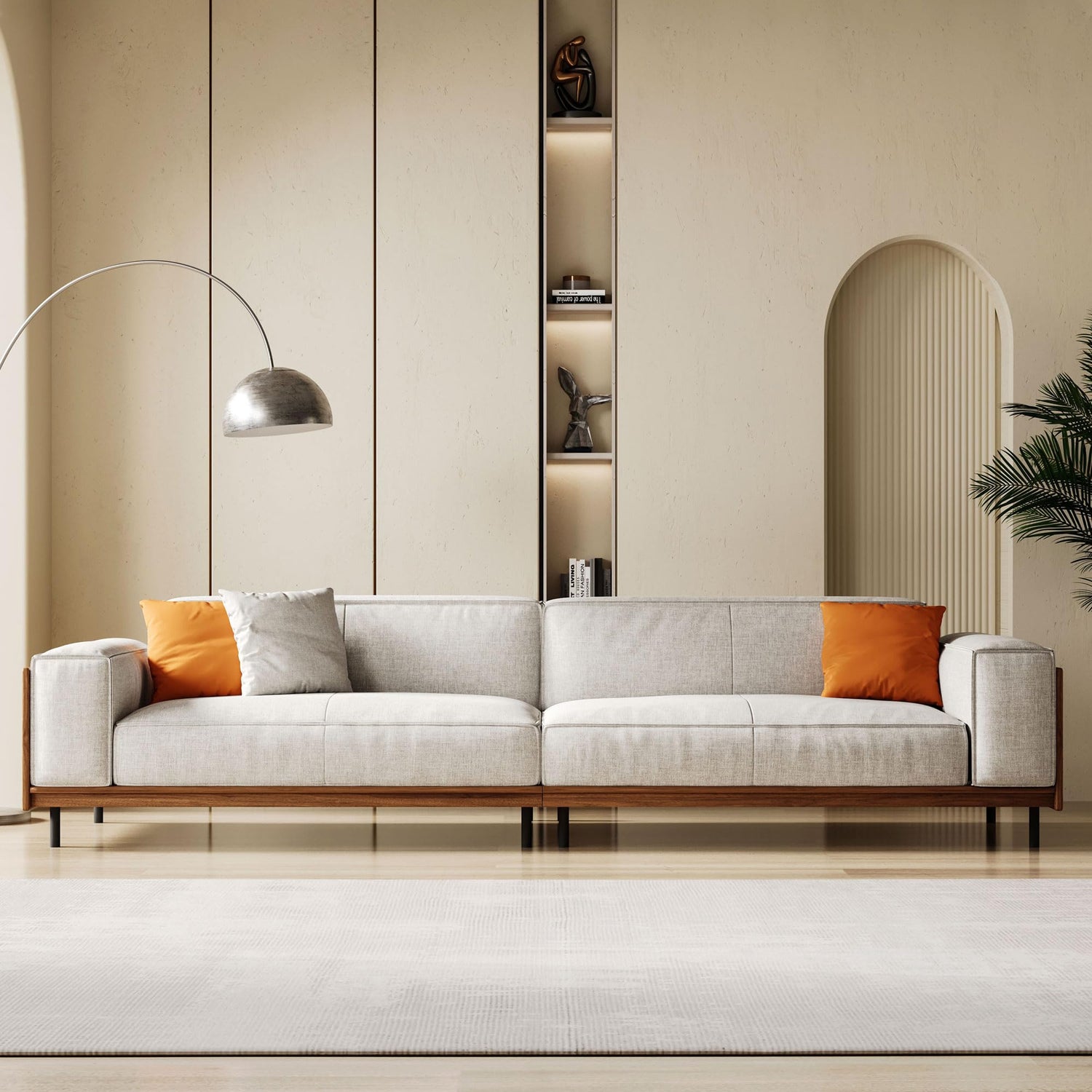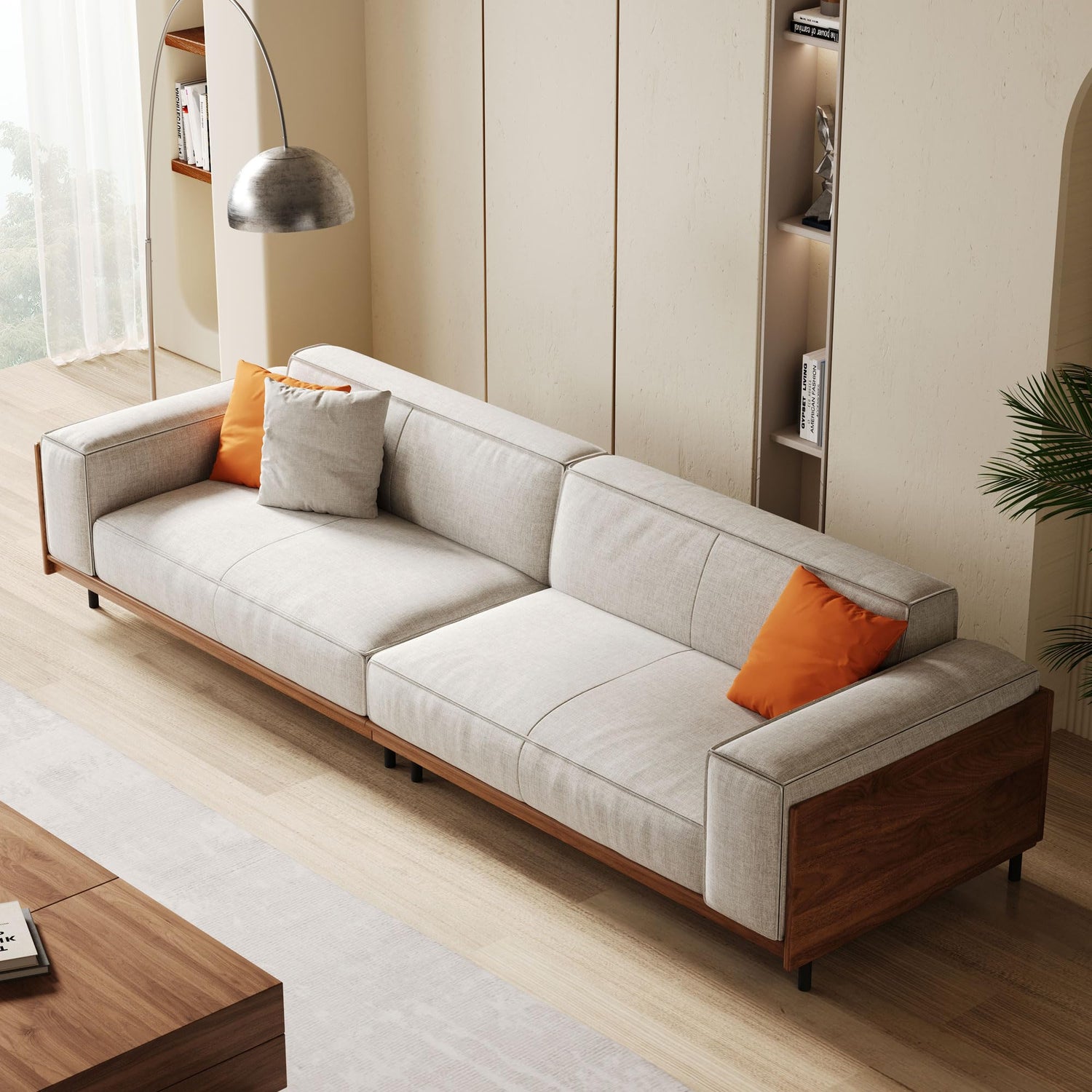 - 【Durable and Sturdy Frame Design】The sofa features a high-quality solid wood frame that has undergone rigorous drying and anti-insect treatment, ensuring durability and resistance to deformation. Reinforced support bars and anti-slip foot pads at the base provide enhanced stability while protecting your floors from scratches. With a weight capacity of up to 1100 lbs, this sofa ensures safety and reliability, even for multiple users at once.