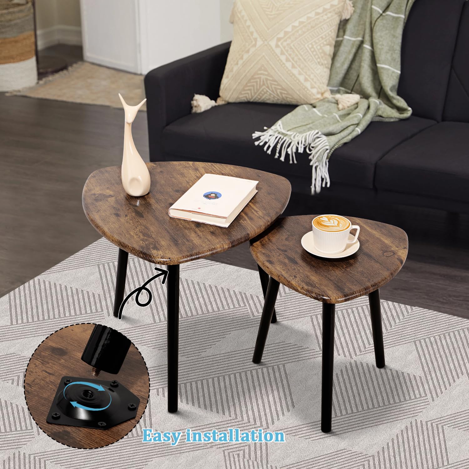 Nesting Coffee Table Set of 2 Triangular End Side Tables Modern Industrial Simple Nightstand Center Table for Living Room Bedroom Apartment, Retro Brown
