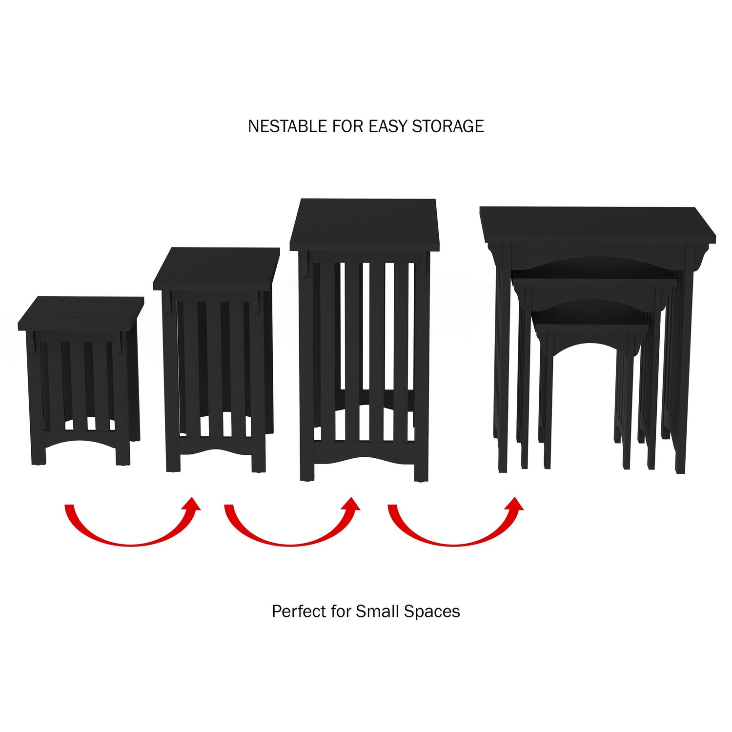 Nesting Tables-Set of 3, Traditional with Mission Style Legs for Living Room Coffee Tables or Nightstands-Home Accent Furniture by Lavish Home (Black)