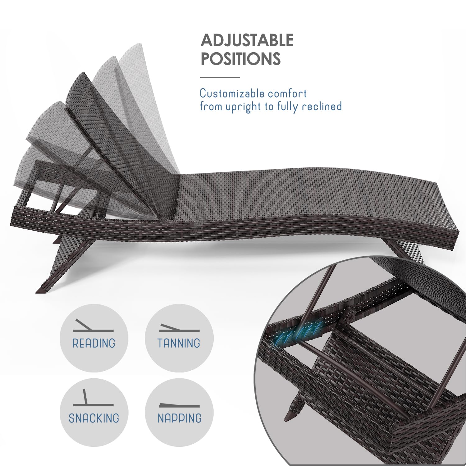 • 5 Adjustable Recline Positions: Enjoy supportive, ergonomic comfort with 5 reclining positions, from fully upright to fully flat, so you can socialize, read, snack, or nap on the patio chaise lounge chair.