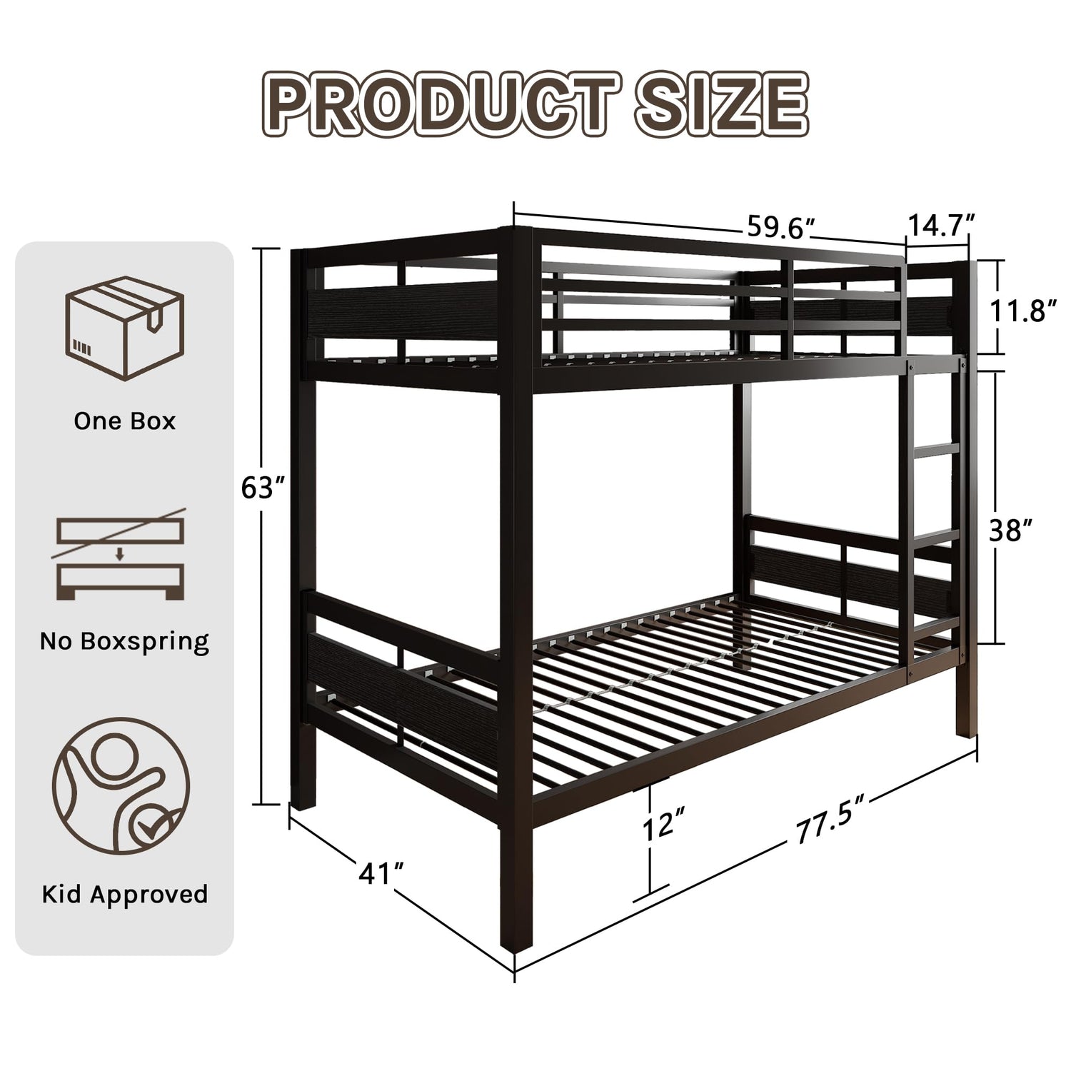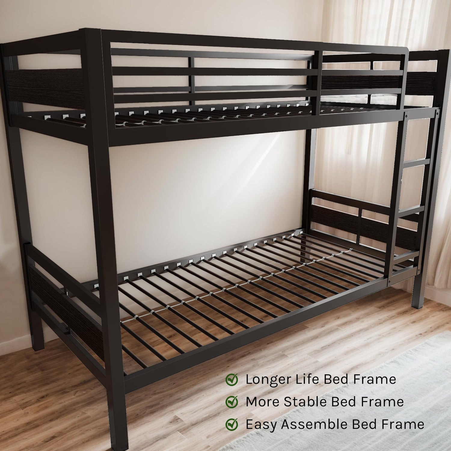 nesture. Bunk Bed Twin Over Twin, Heavy Duty Metal Bunkbeds with Full-Length Guardrail, Space-Saving Steel Bed for Kids & Adults, No Box Spring Required, Black