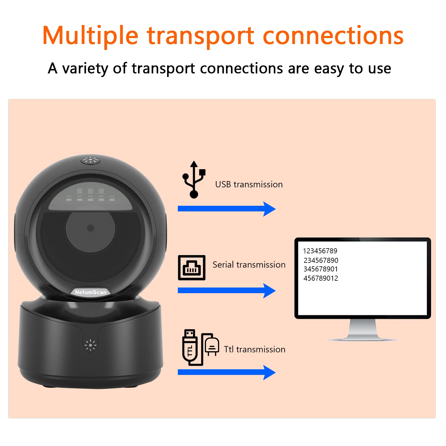 - ➽【Omnidirectional Automatic Barcode scanner】NetumScan Barcode Scanner can easily capture bar codes 1D, 2D/QR on labels, paper, and mobile phone or computer displays,Sensitive and accurately and you can easily scan damaged barcode, distortion barcode, colorful barcode and reflective barcode, etc special barcode. Perfect for retail and other high-volume scanning applications.