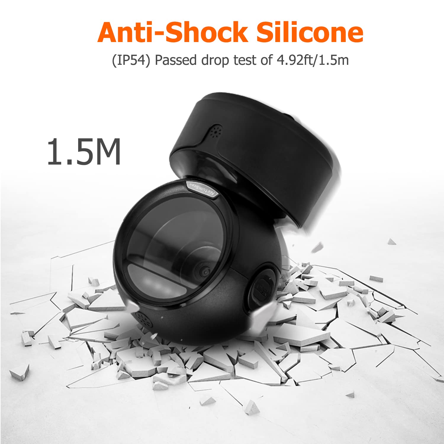 - ➽【Non-slip Base and Anti-shock Design】Our Handsfree Omnidirectional Barcode Scanner can be directly placed on the desk, the anti-slip base makes it more stable, Built-in anti-vibration system can avoid damage while falling from the height of 4.92 feet. IP54 technology protects the wireless barcode scanner from dust.